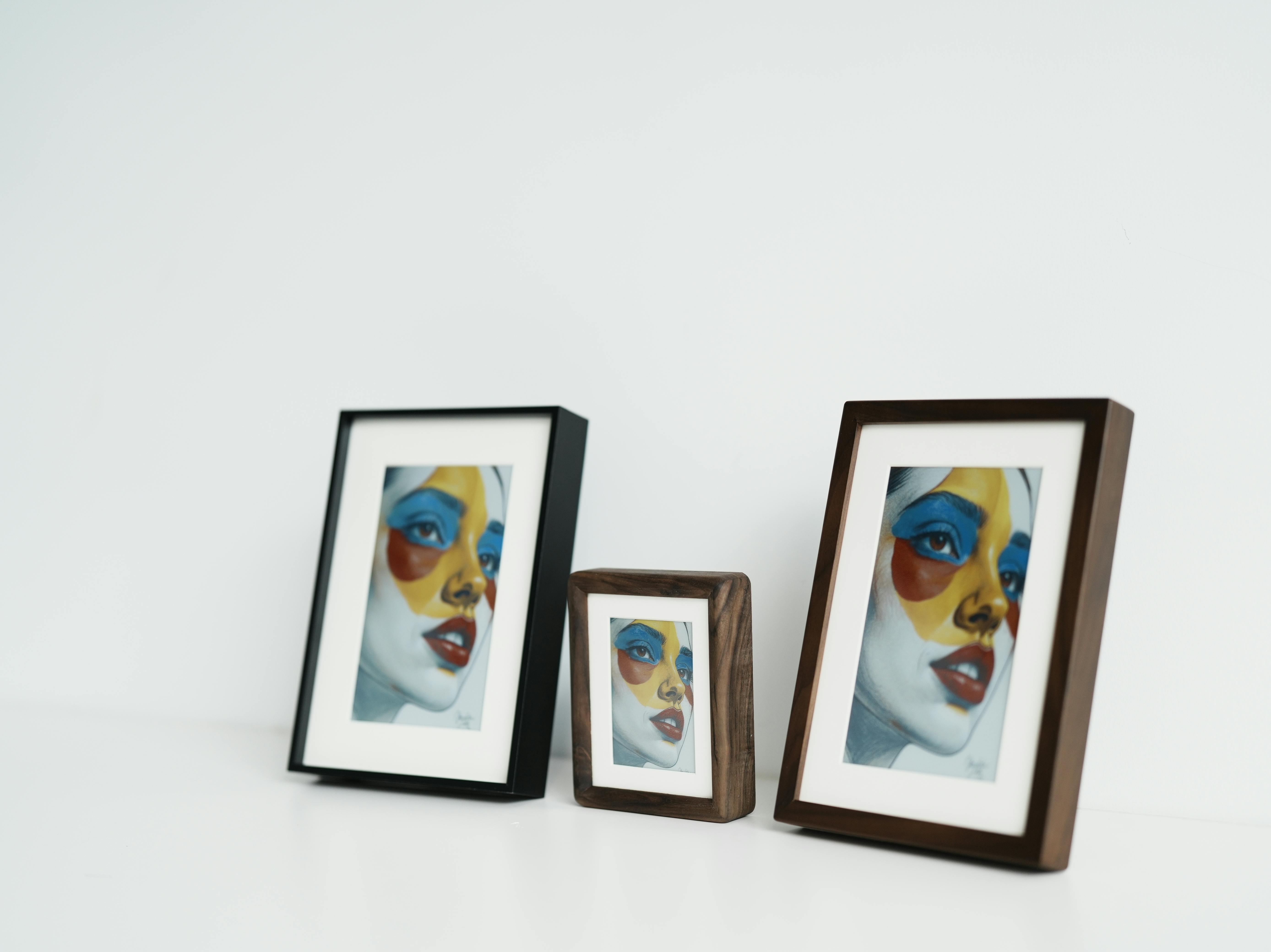 今回のプロジェクトでは、写真やポスターがスマートに飾れるアルミと、和室などにも調和しスケッチや名画が映えるウォールナットの2種類のフレームをご用意しました。