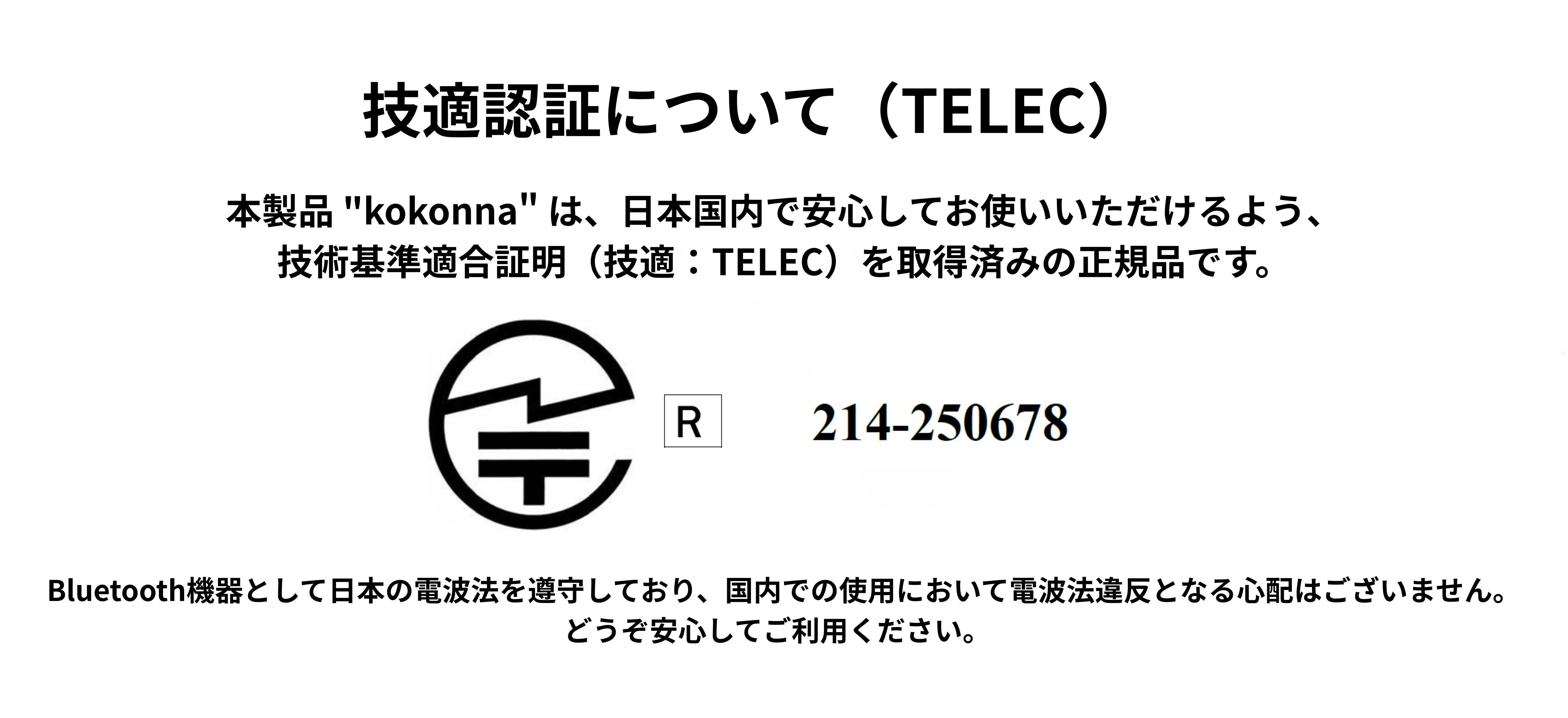 本製品「Kokonna AI E-ink Frame」は、主用途が表示・鑑賞用のアートフレームであり、電気用品安全法(PSE)で定められた「電気用品」には該当しない製品構造となっております。