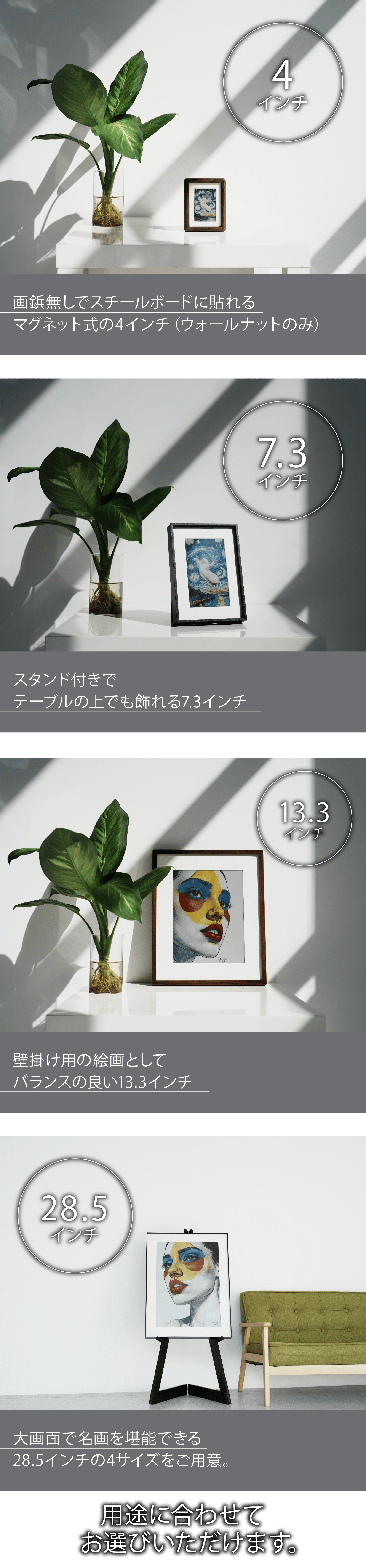 簡単に絵画の入れ替えが可能な電子インク式デジタルアートフレームです。