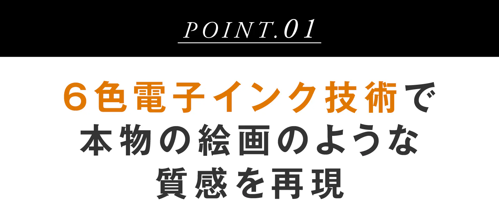 バックライトを使用せず、表示される絵画の見た目の質感は紙に描いた絵画やポスターそのまま。