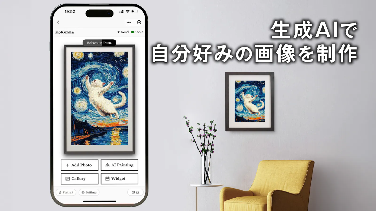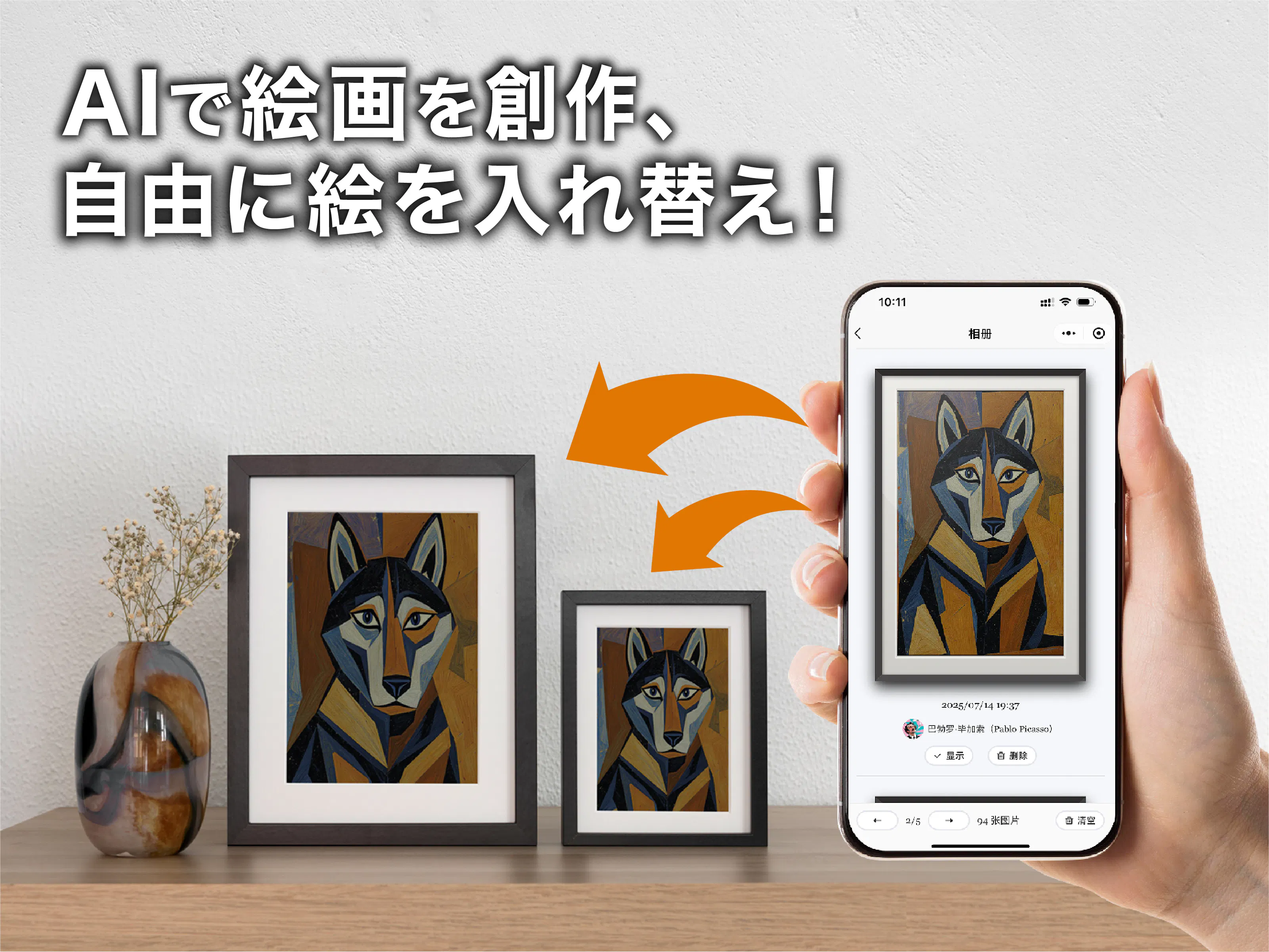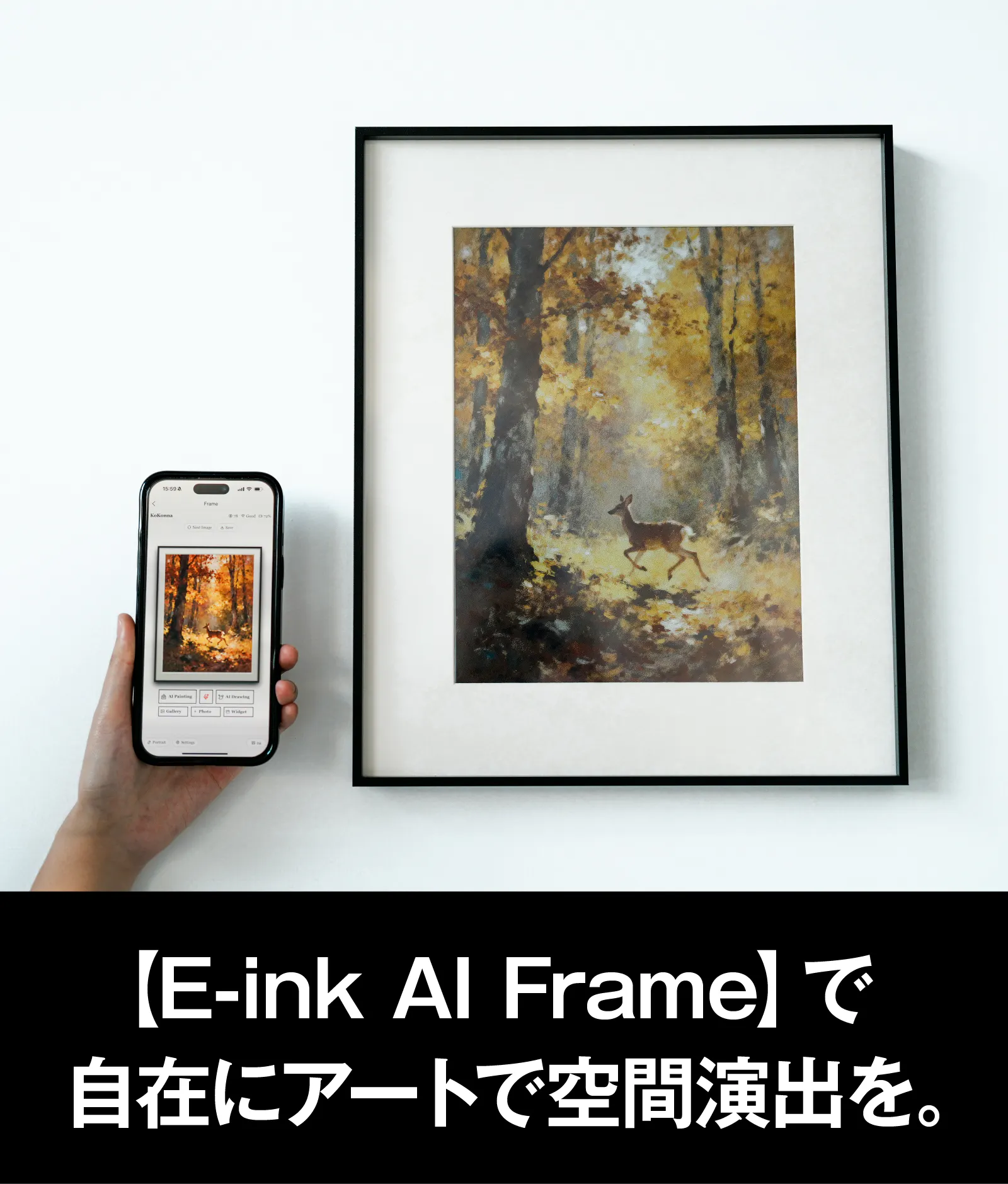 【E-ink AI Frame】なら季節やイベントに合わせて、絵画をスマホから自在に交換できます。