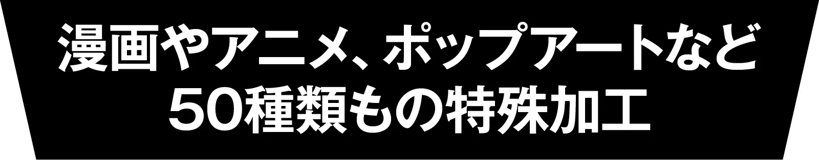 漫画やアニメ、ポップアートといった50種類もの特殊効果で絵柄をチェンジ可能です。