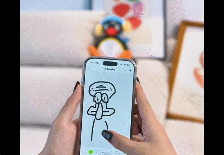 お子様のお絵描きを【E-ink AI Frame】の生成AIで演出してインテリアとして壁に飾れば、きっと大喜びしてくれることでしょう。