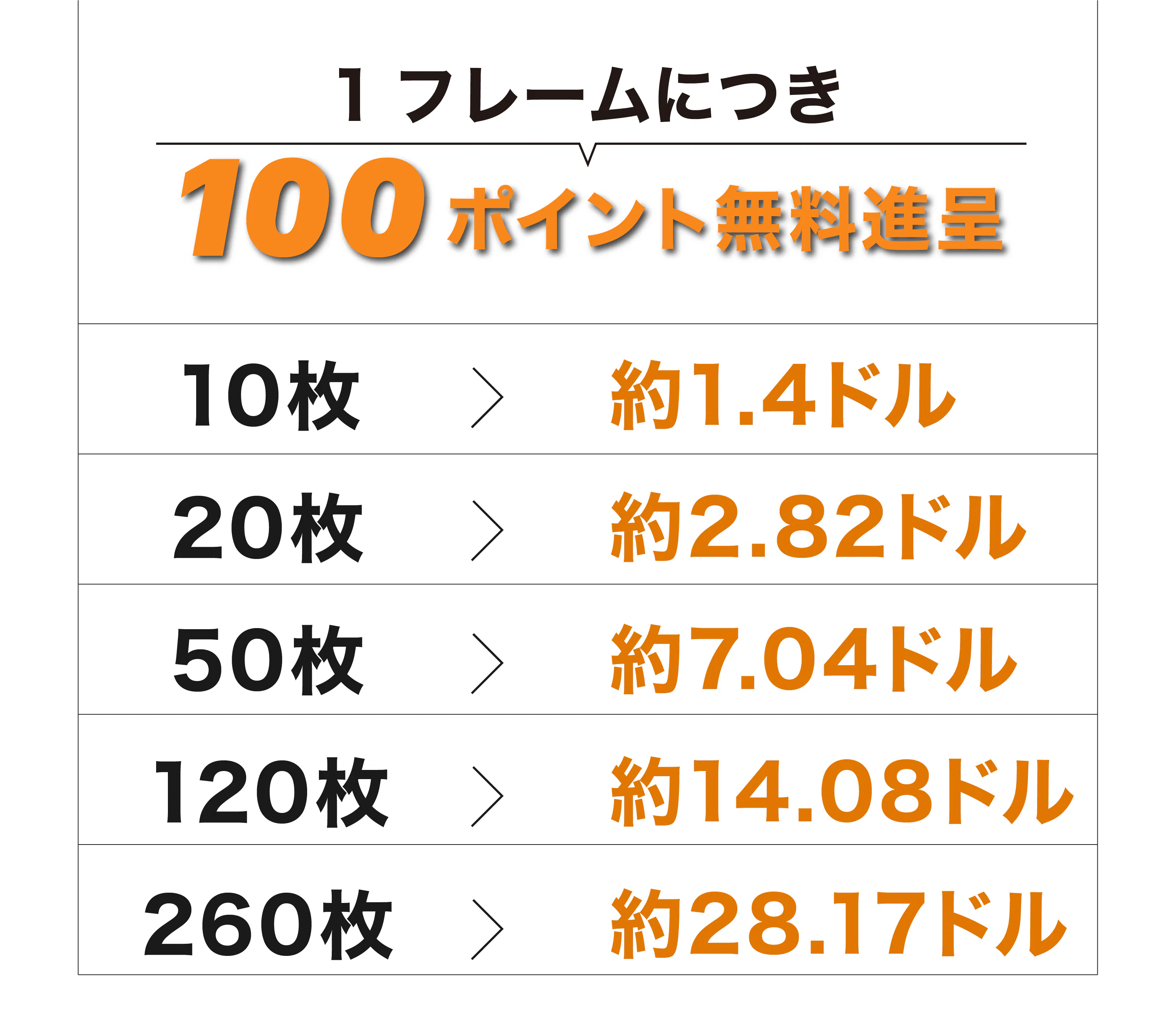 本商品では、1商品(1フレーム)につき無料で100ポイントが付与されます。