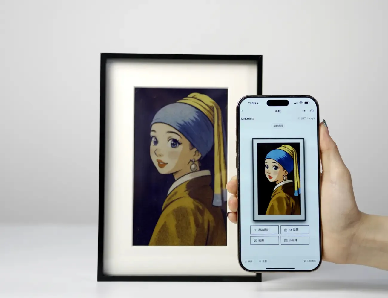 【E-ink AI Frame】は専用のスマホアプリの生成AI技術で様々な絵画を創作し、