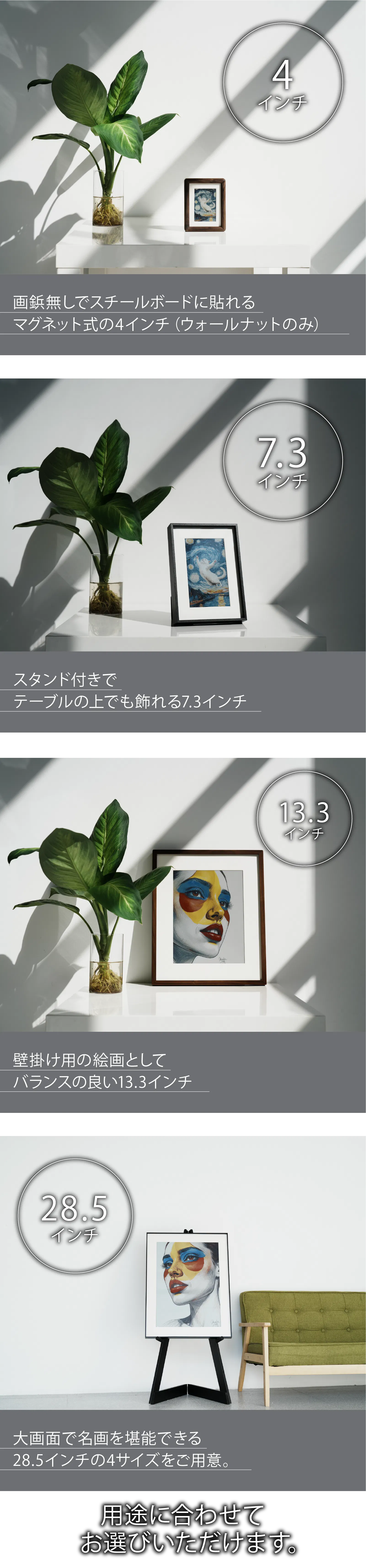 簡単に絵画の入れ替えが可能な電子インク式デジタルアートフレームです。