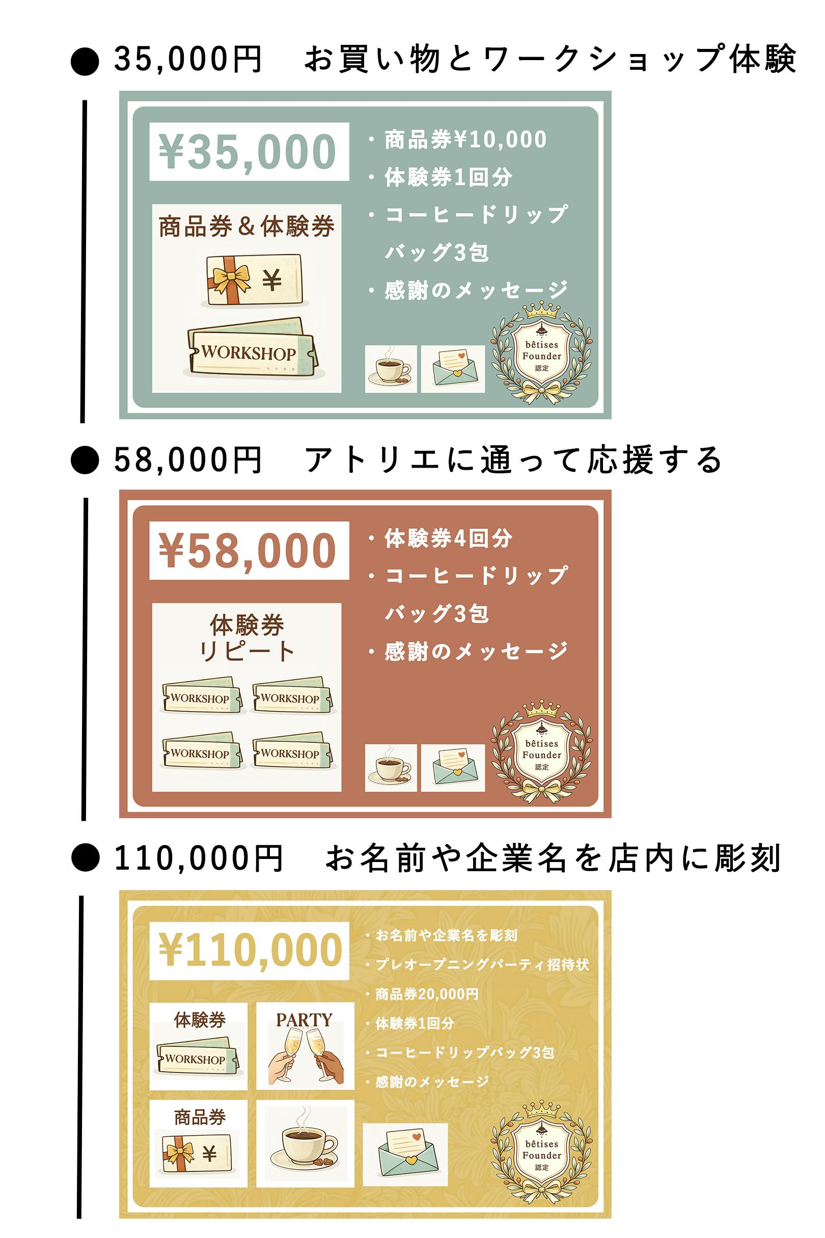 皆さんにぜひベティーズ代官山の創る未来を応援いただき、一緒に盛り上げていく仲間になっていただきたいと考え、今回以下のようなリターンを準備させていただきます。