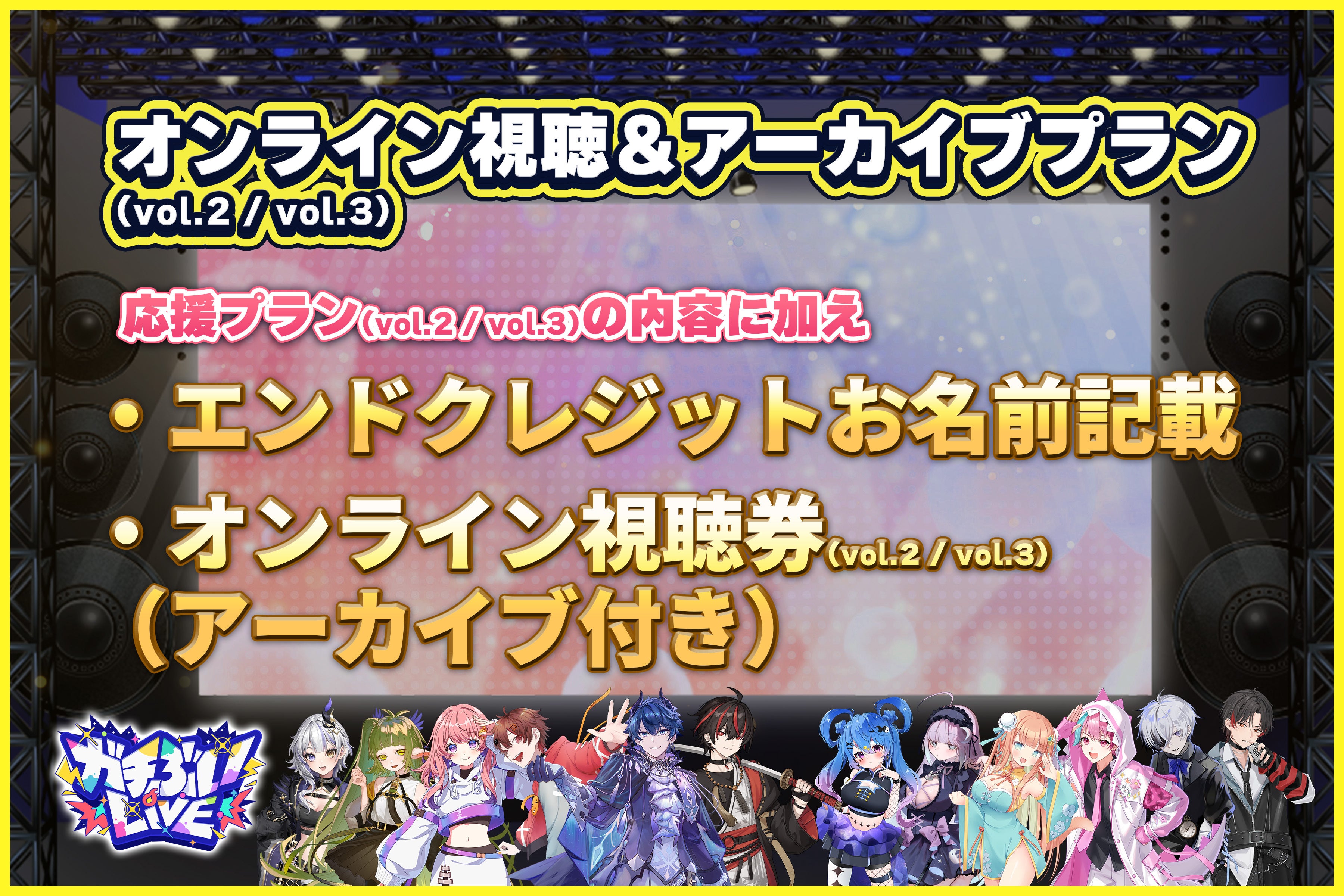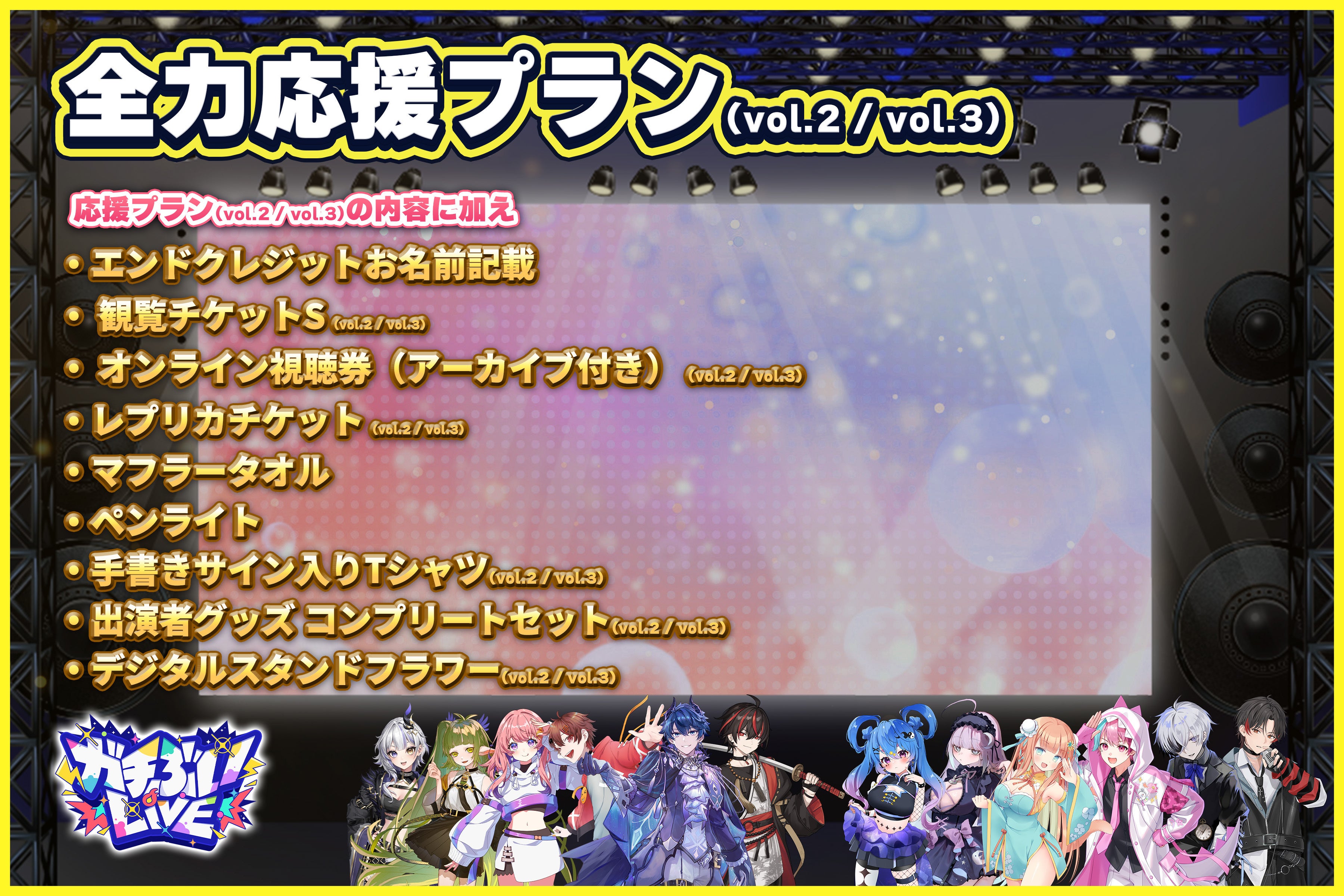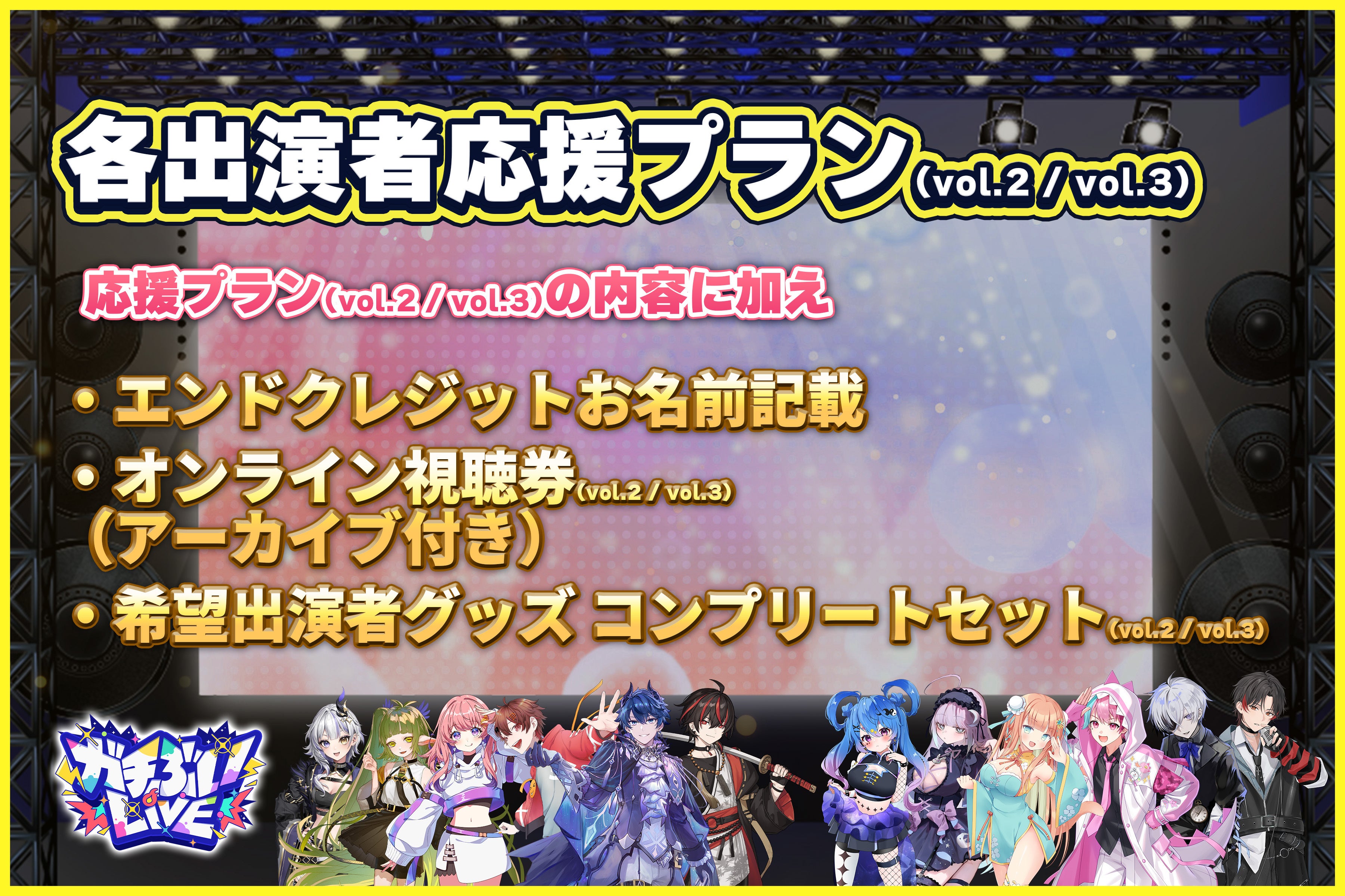 ガチぶいLIVE vol.2(8/16)・vol.3(10/24)の開催決定に伴い、新たに以下の支援プランを追加いたしました。
