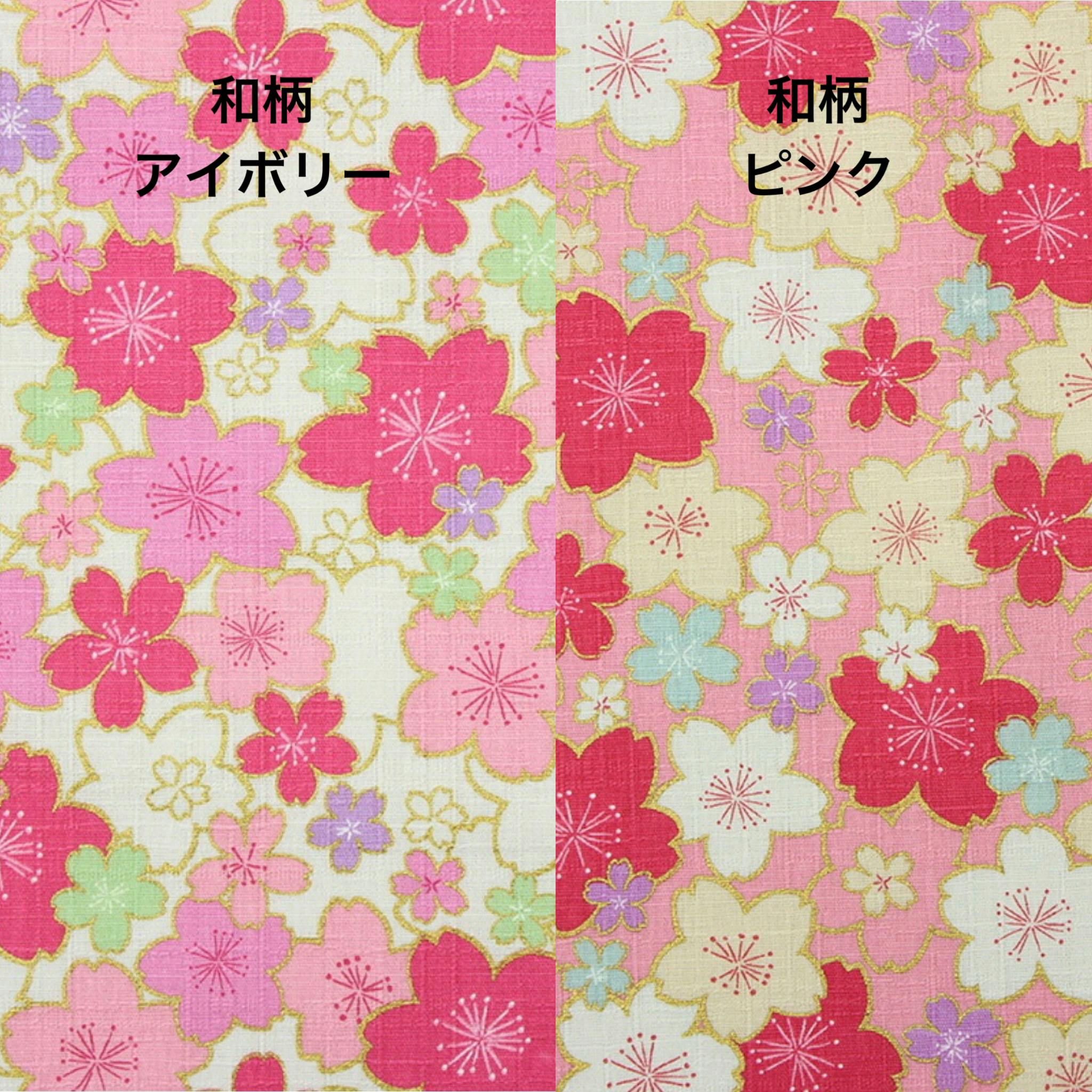 アイボリーがベースの桜柄、もしくはピンクがベースの桜柄、どちらも女の子らしく、ひな祭りにピッタリの生地です。