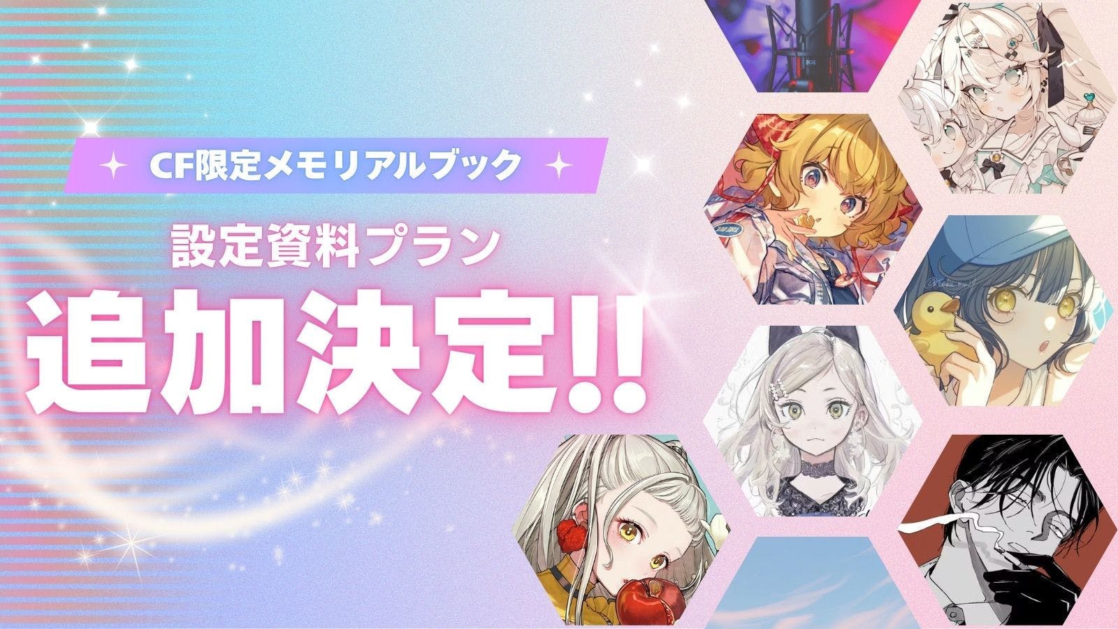 世界設定やキャラクターの詳細設定、初期案を含めたキャラクターデザインラフを詰め込んだ、プロジェクト立ち上げ記念に制作するクラウドファンディングだけのメモリアルブックをお届けします。