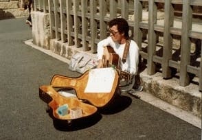 当時はまだ「ストリートミュージシャン」という言葉も一般的ではなく、自らを 「大道ミュージシャン」 と名乗り、日本全国を歌いながら旅していました。