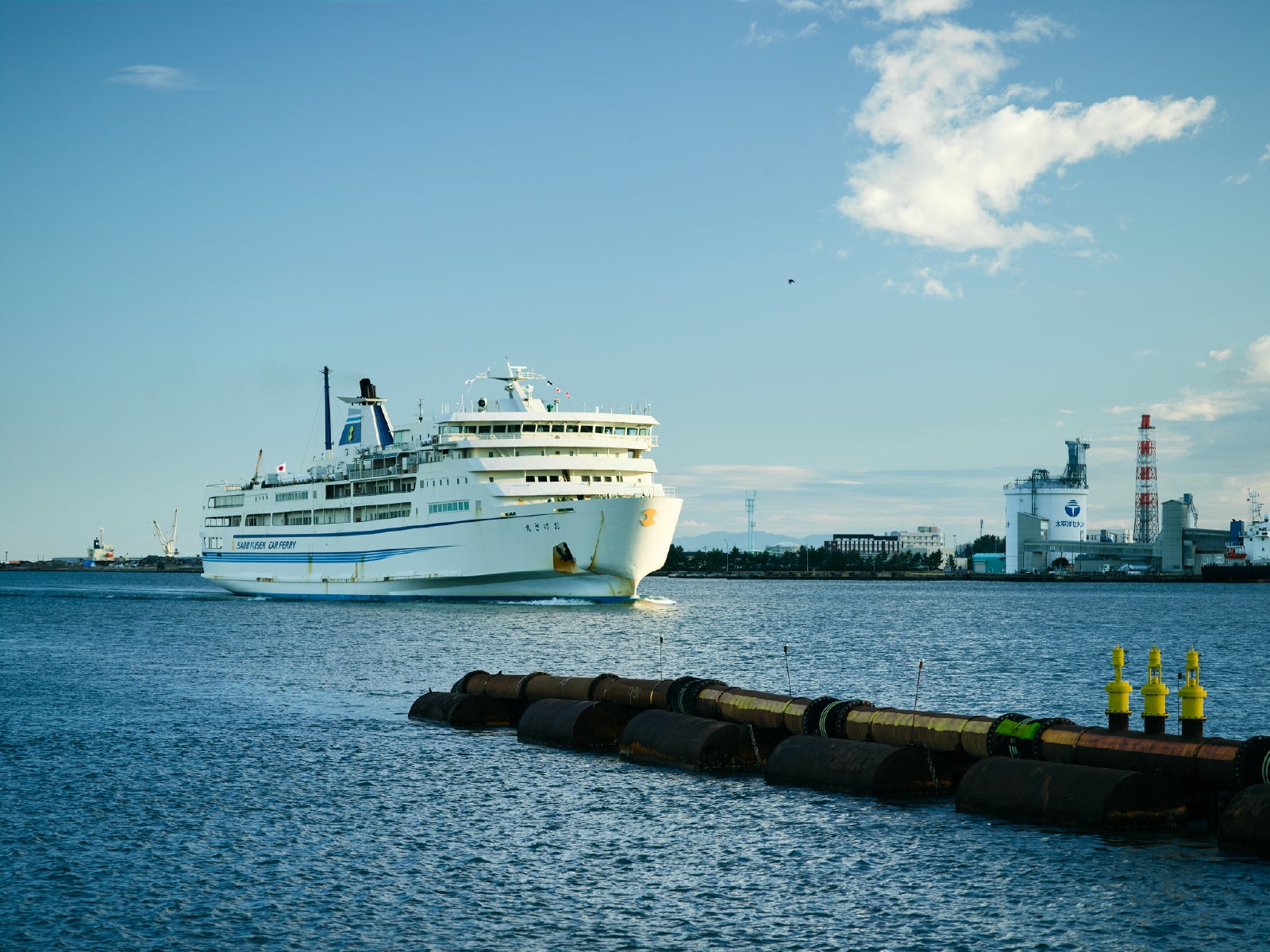 佐渡汽船の船が入港する信濃川 @みなとぴあ