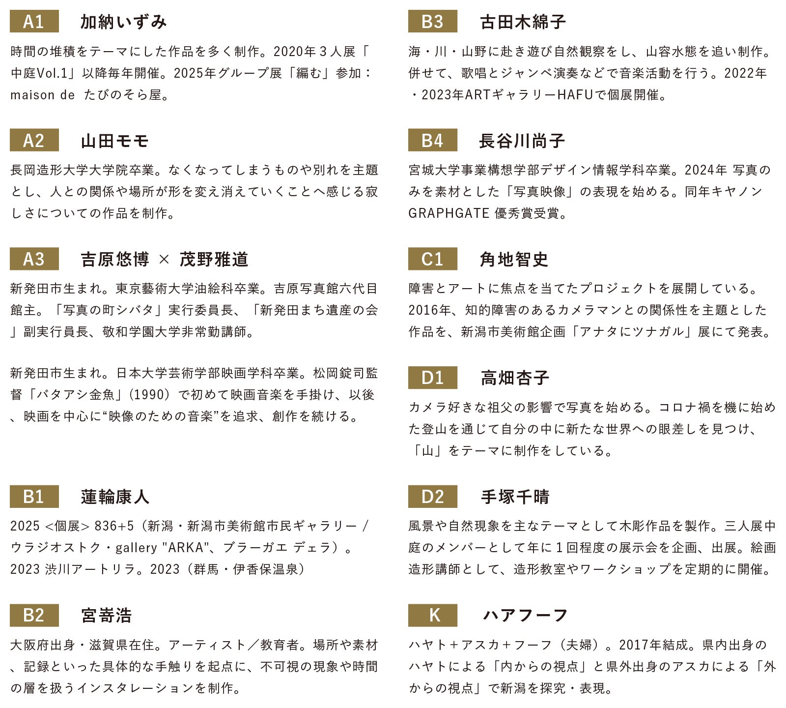 現在は、新潟に縁のある12のアーティストが、それぞれの建物の空間を活かした展示作品の制作を進めてもらっています。