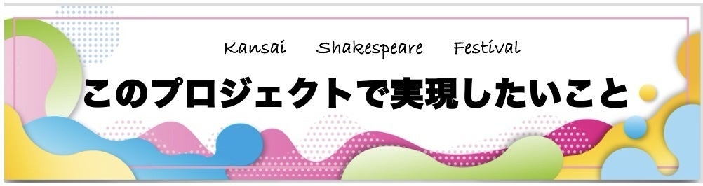 このプロジェクトでは、2026年を通じて「シェイクスピア」作品や関連作品を関西各地で上演するフェスティバルを実現します。関西最大の演劇フェスティバルを開催することで、関西の演劇界を盛り上げ、新しい観客層を開拓し、演劇文化の普及と発展を図ります。演劇を通じて、地域の芸術文化の輪を広げ、より多くの人々に演劇の楽しさと感動を届けたいと考えています。