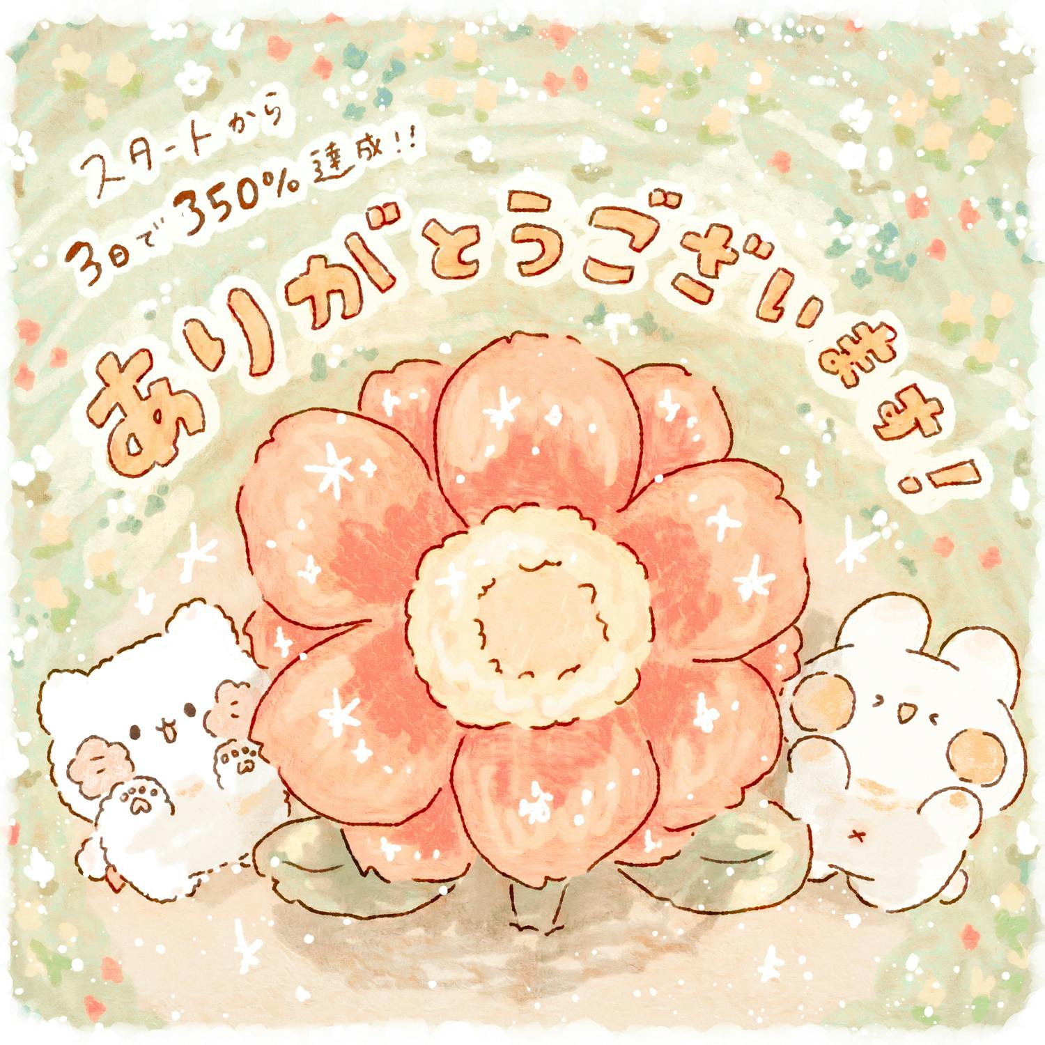 皆さまのおかげで、先日お知らせしたネクストゴール(250%)を達成し、さらになんと350%も達成することができました。