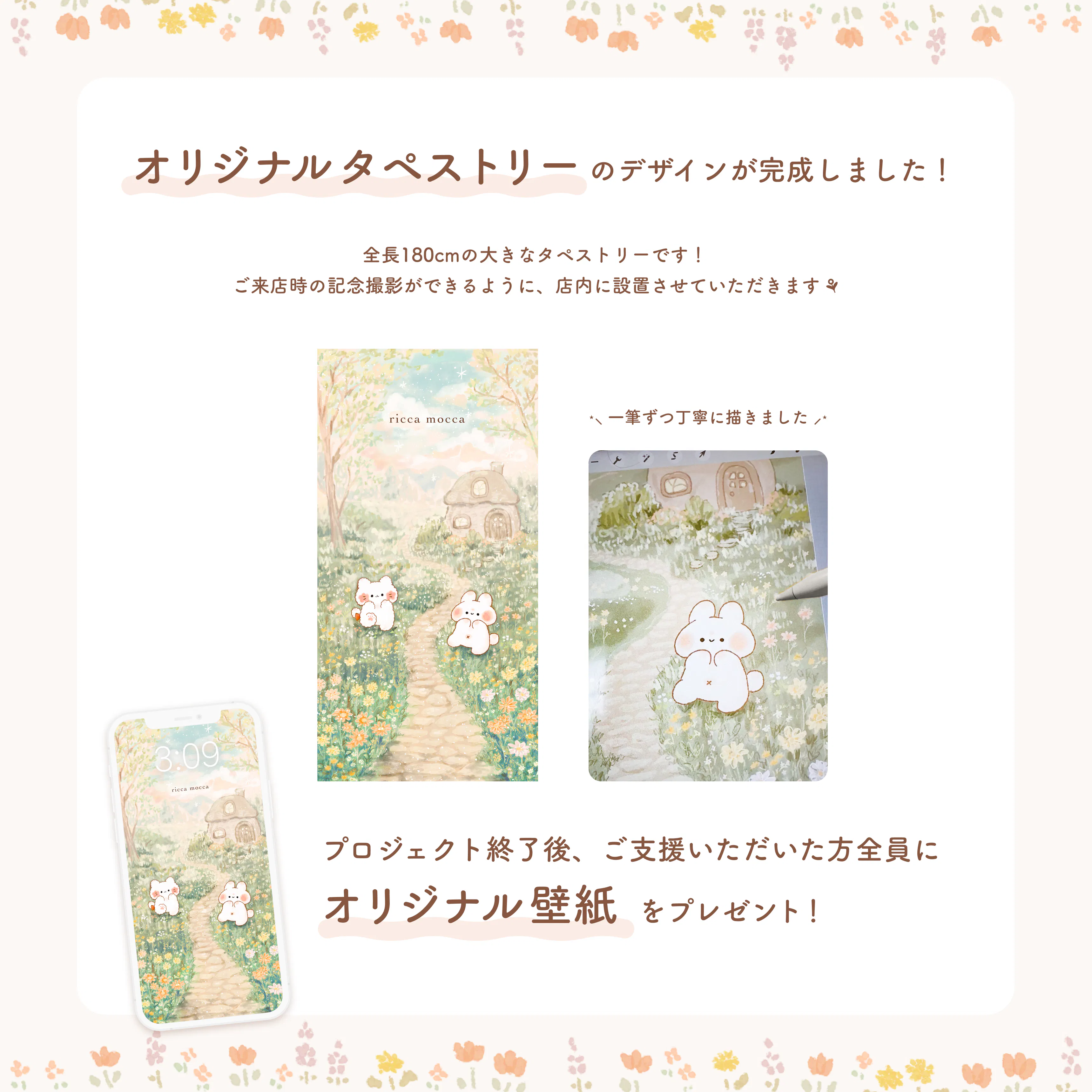 また、プロジェクトにご参加いただいた全ての皆さまには、タペストリーと同じ絵柄のオリジナル壁紙をプレゼントさせていただきます!