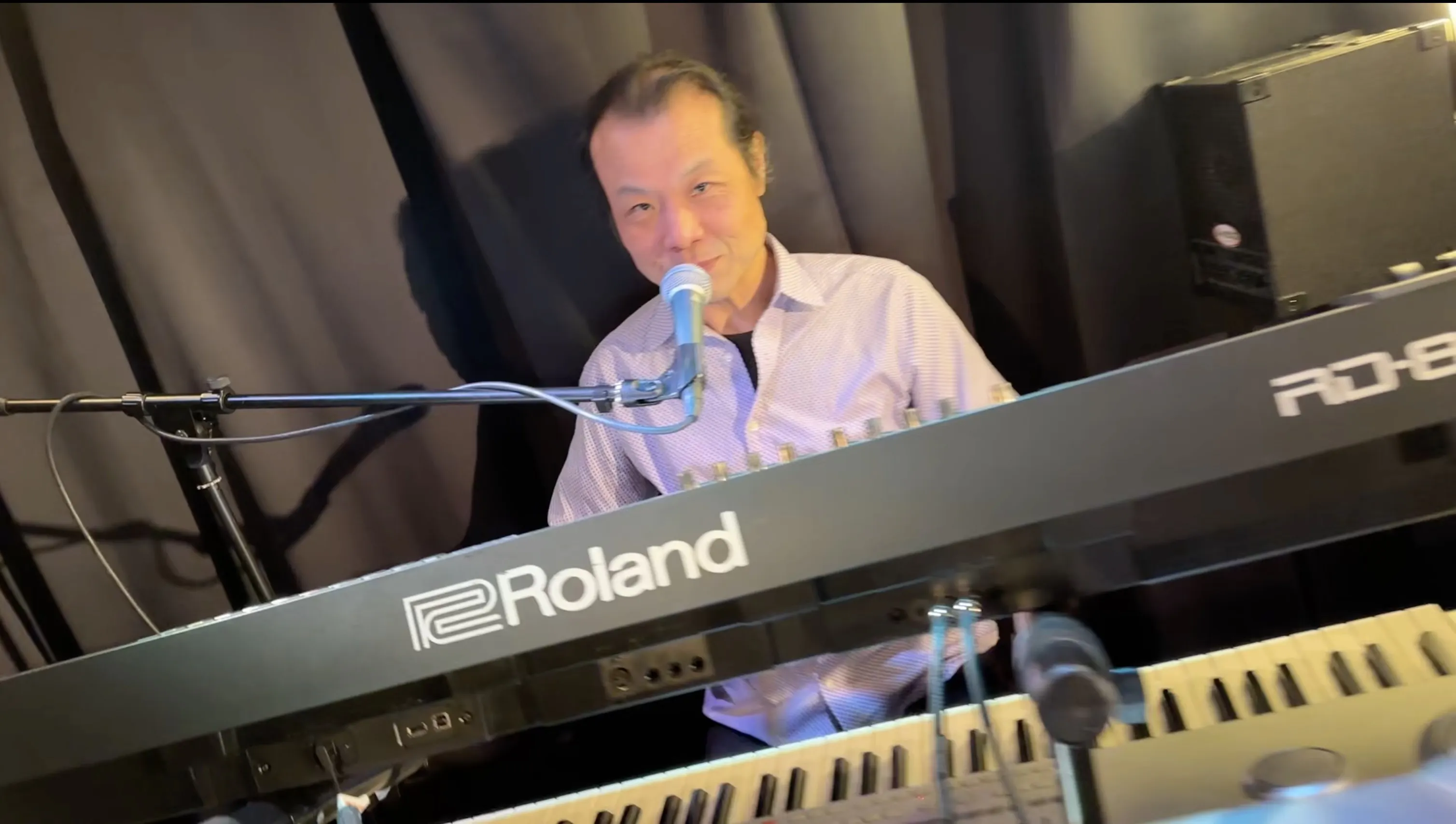 何台もキーボード持ち歩くわけにもいかないので、基本一番下のキーボード(ピアノ、エレピの音)は店のエレピ、そして下から2番目のキーボードは自分のを持ち込んで、これでブラスやストリングスの音を弾く。