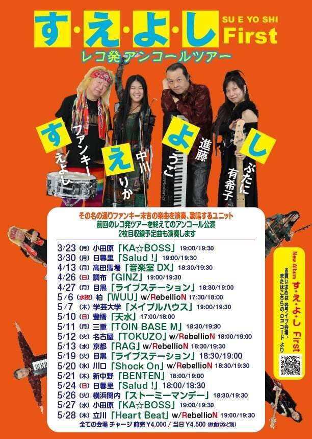 2026/02/28 04:46クラウドファンディング締切まであと19時間となりました。私は日本からアフリカのナイジェリアまで54時間の旅に出ていて、今はロンドンのヒースロー空港でこれを書いています。おそらく19時間後には機上の人となっているため、ここで目標額達成の御礼と共に、次のアルバムに収録する楽曲も演奏するであろうアンコールツアーのお知らせを置いておきます。アフリカからイギリスに戻ってツアー中、そして帰国してからの数本のライブの後に、パスポート更新してVISAの貼り替えのために4月にまた中国に行かねばならず、その時にドラムをレコーディング出来ればと思ってます。つまりそれまでに次のアルバムの楽曲を決めてアレンジを済ませておかねばならないということです。私はまず楽曲のDEMOを作りますので、その段階で支援者の皆さまには難曲かお聞かせすることができるかも知れません。お楽しみにお待ちください。アンコールツアーの日程は下記のようなものです。お近くにいらした際には是非お立ち寄りください。「す・え・よ・し」レコ発アンコールツアーその名の通りファンキー末吉の楽曲を歌唱演奏するユニット前回のレコ発ツアーを終えてのアンコールツアー2枚目収録予定曲も演奏しますす:ファンキー末吉(Ds,Vo)え:中川えりか(二胡、Vo)よ:進藤陽悟(Key,Vo)し:渋谷有希子(Ba.Vo)予約:4000円当日:4500円3月23日(月)小田原鴨宮KA☆BOSS19:00/19:303月30日(月)日暮里Salude19:00/19:304月13日(月)高田馬場音楽室DX18:30/19:304月26日(日)調布GINZ19:00/19:304月27日(月)目黒ライブステーション18:30/19:005月6日(水)柏WUU w/RebellioN17:30/18:005月7日(木)学芸大学メイプルハウス19:00/19:305月10日(日)豊橋天水17:00/18:005月11日(月)三重TOIN BASE M18:30/19:305月12日(火)名古屋得三 w/RebellioN18:00/19:005月13日(水)京都RAG w/RebellioN18:30/19:305月19日(火)目黒ライブステーション18:30/19:005月20日(水)川口ShockOn w/RebellioN18:30/19:305月21日(木)新中野BENTEN18:00/19:005月24日(日)日暮里Salude18:00/18:305月26日(火)横浜関内ストーミーマンデー18:30/19:305月27日(水)小田原鴨宮KA☆BOSS19:00/19:305月28日(木)立川HeartBeat w/RebellioN19:00/19:30 もっと見る