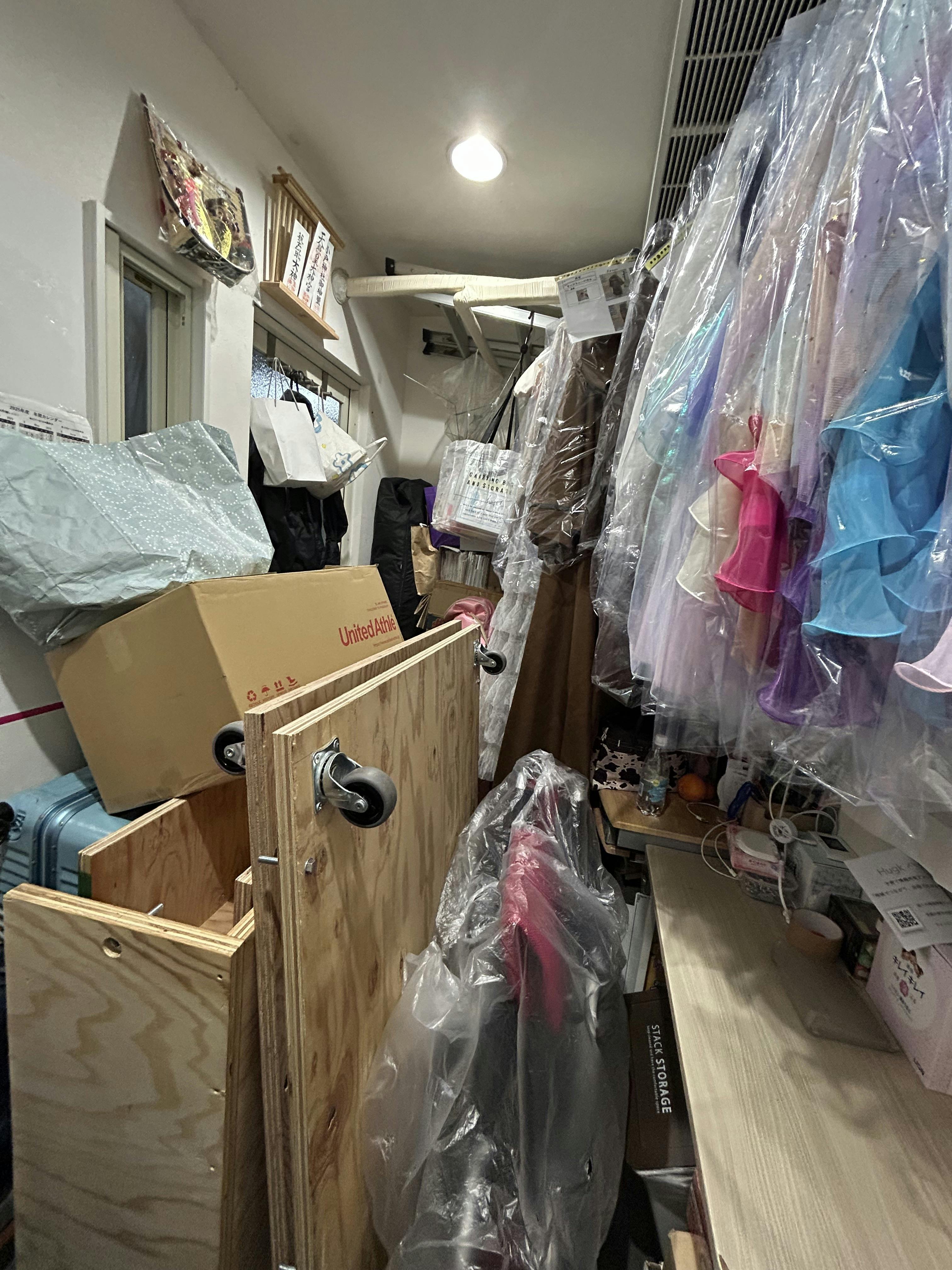 いつも、よくこの狭い事務所に舞台で使う小道具と衣装が全部入るな〜と。。。