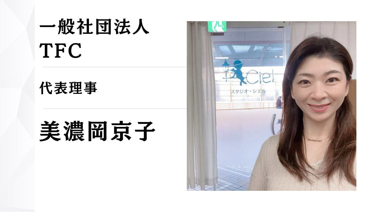 はじめまして。一般社団法人TFC 代表理事、そしてミュージカルクラブSTUDIO Cielを主宰しております、美濃岡京子と申します。