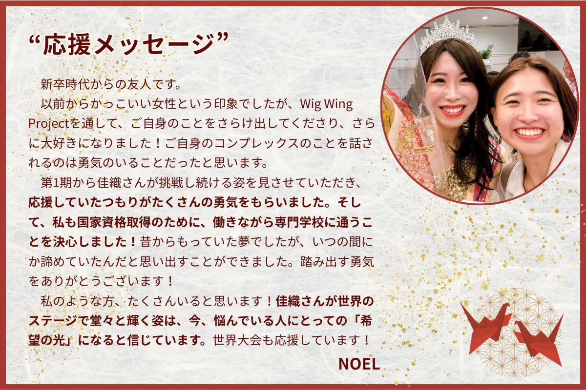 仲間とともにWig Wing Projectを立ち上げ、クラウドファンディングやチャリティイベントを実施し、医療用ウィッグをお届けしてくれました。