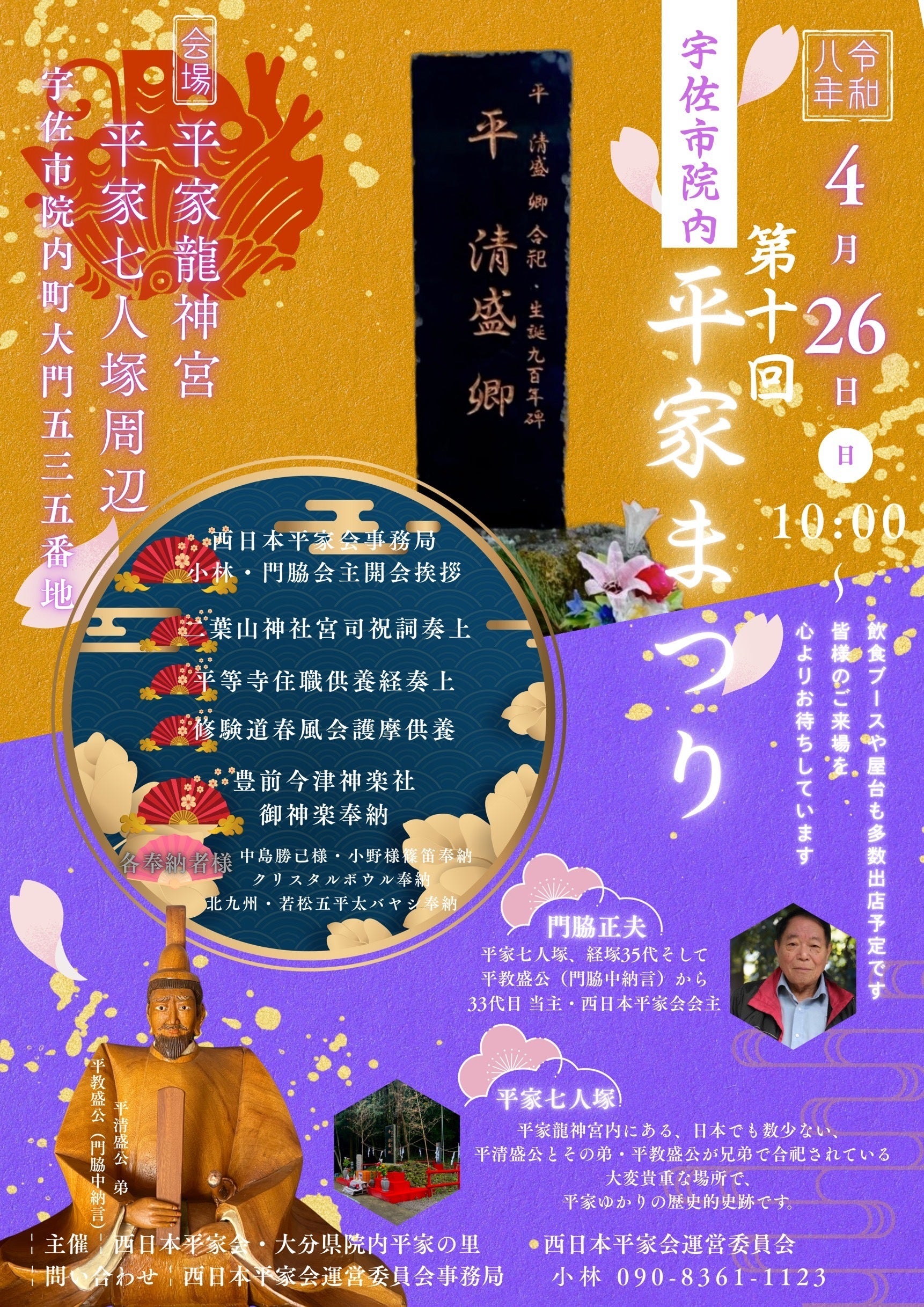 平清盛公の弟であり、大河ドラマ「鎌倉殿の13人」の登場人物である「平教盛公」の子孫である門脇正夫さんが会主となり、平家の子孫や平家にゆかりのある人々で形成されております。