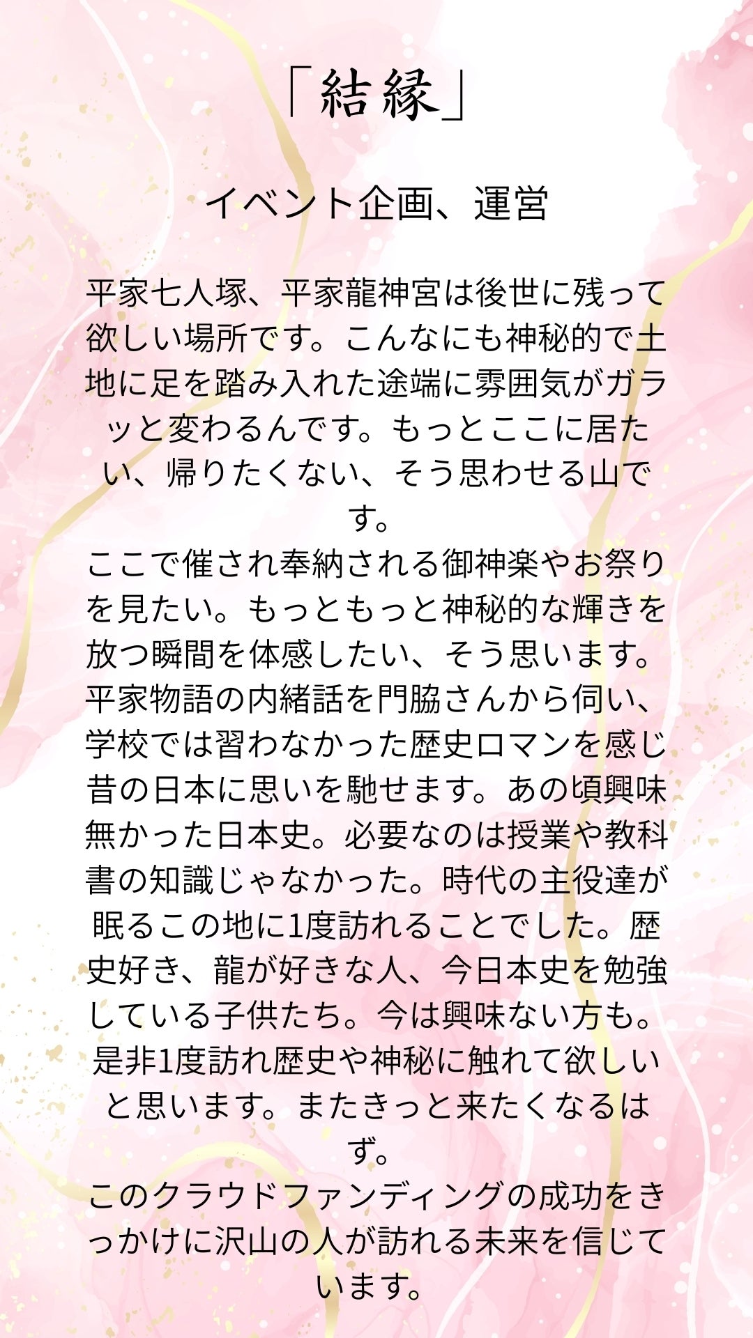 どうか再び、皆様のお力をお貸しいただけますと幸いです。
