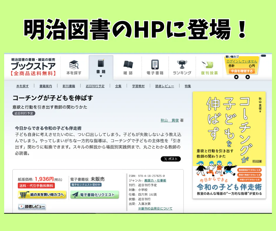 明治図書のHPに『コーチングが子どもを伸ばす』が登場しました。
