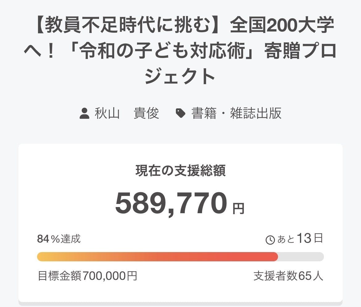 ※70万円達成できれば、200大学に寄贈できる予定です。