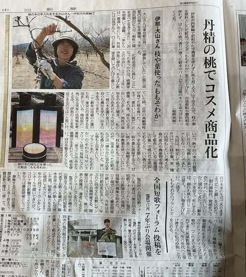桃畑での取り組みや、そこから生まれた「ももそわか」を、写真とともに丁寧に取り上げていただいています。