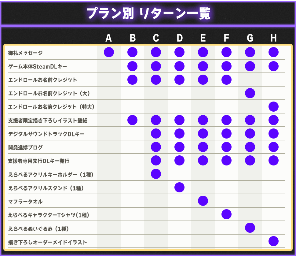 ※リターンの配布はゲームリリース時期を想定しております。