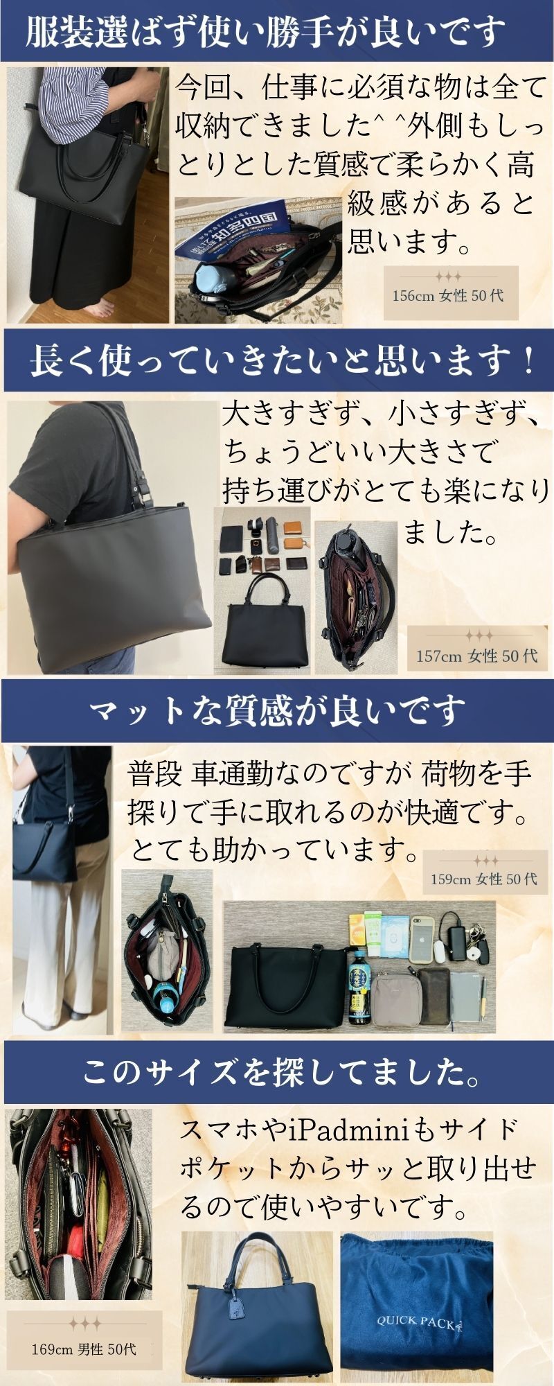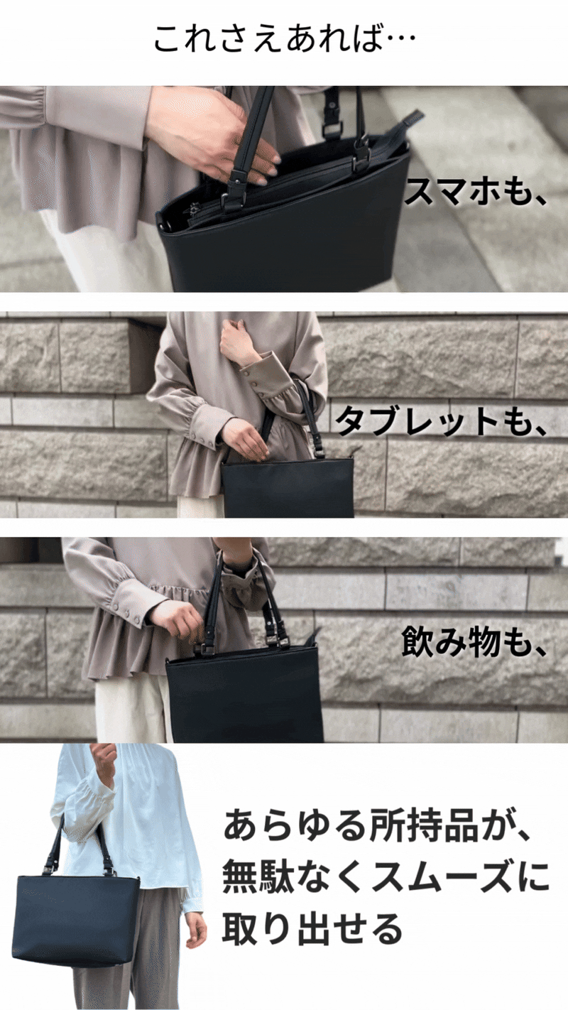 通勤、出張で移動が多い、タブレットをよく持ち歩く、スマホの出し入れが手間で嫌、荷物が取り出しにくいことにストレスを感じる、そんな方におすすめです。