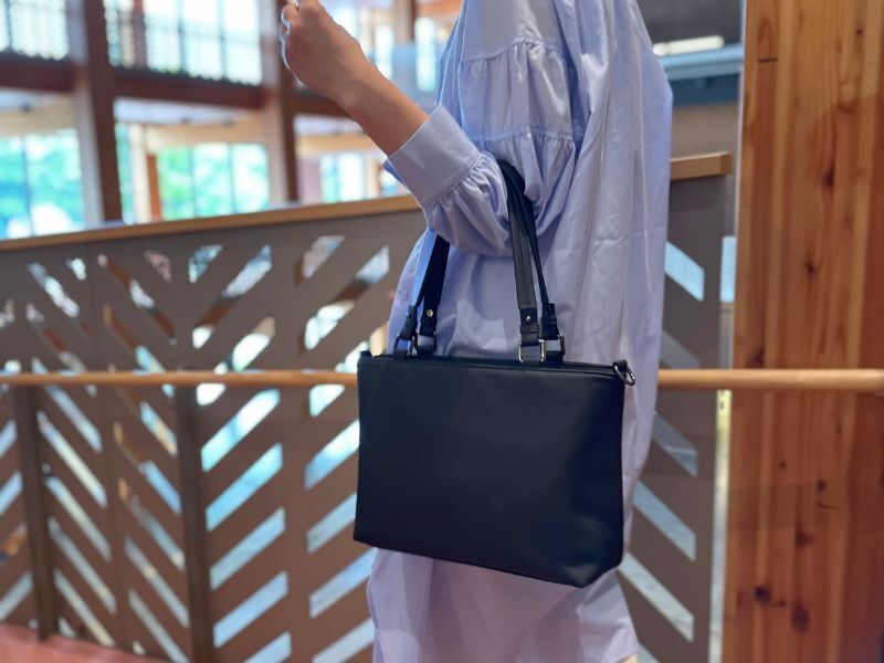 数あるPUレザーの中でも、バッグの生地として最適な、柔らかくサラサラとした肌触りが特徴的で、弾力性・柔軟性に優れたものを厳選して採用しました。