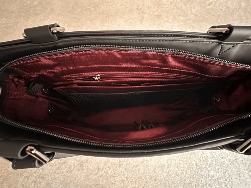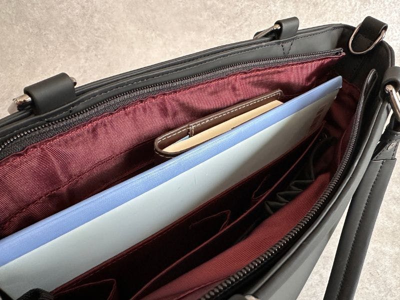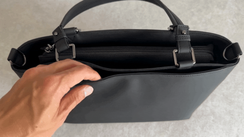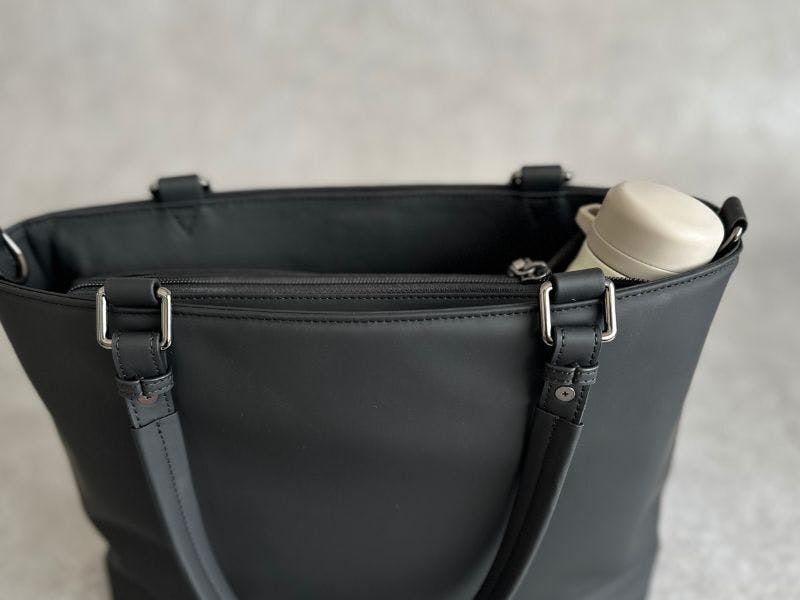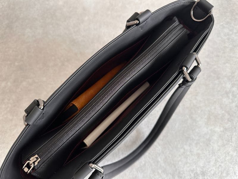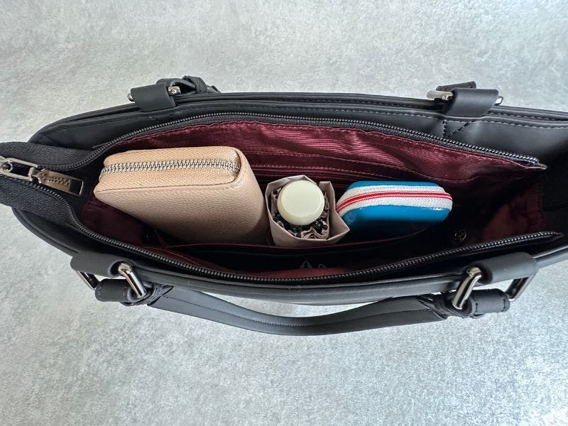 ファスナーがきっちり閉まるので、中身が丸見えになる心配はありません。