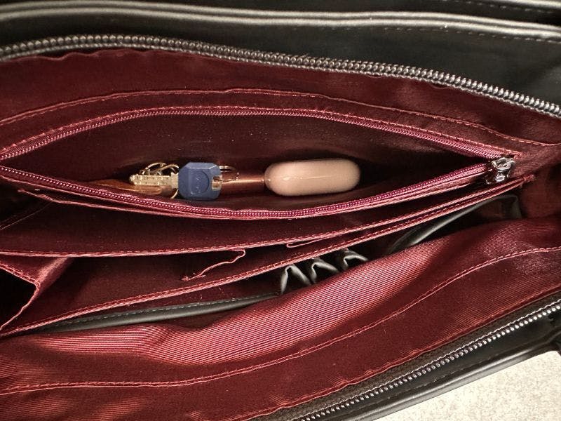 迷子になりやすい家の鍵やリップクリームは、ファスナー付きのスペースをご使用ください。