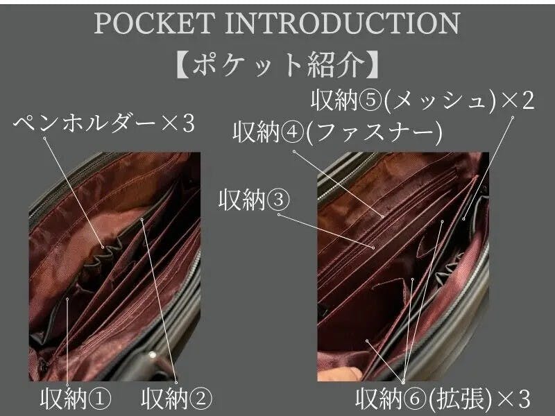 側面にはバッテリーや名刺、ペンが入る小物スペースも。