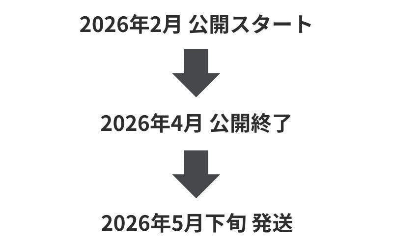A. プロジェクト終了後の配送となりますので、2026年5月末の発送・お届けを予定しています。
