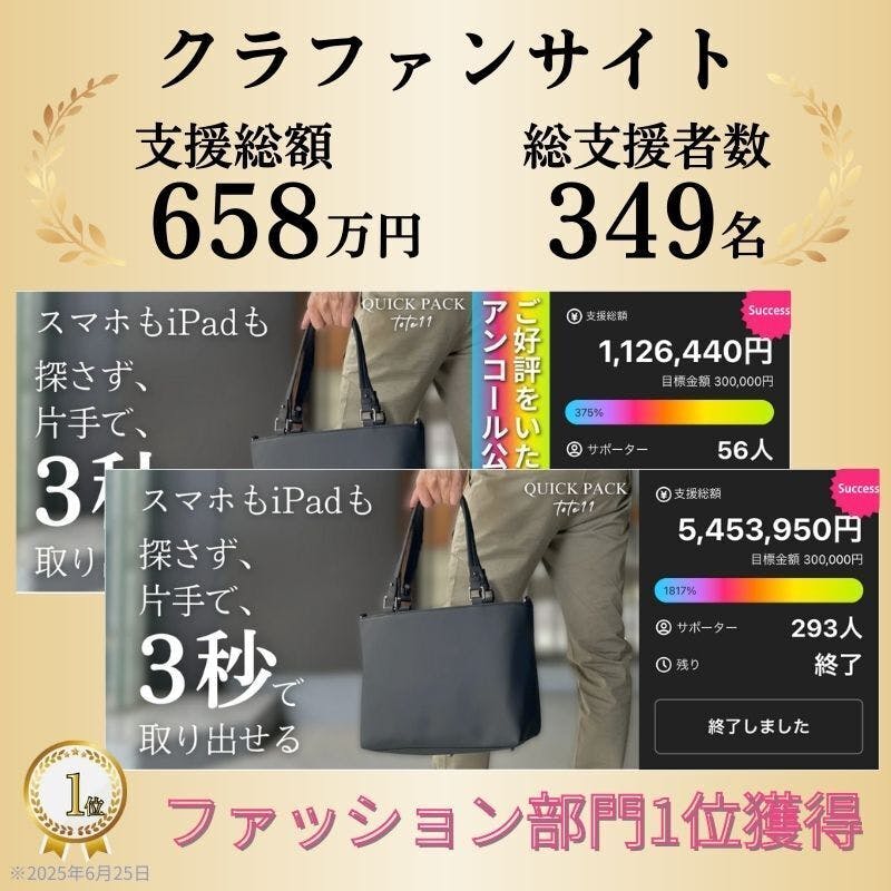 2026/02/25 17:00支援者のみなさまいつもプロジェクトの応援ありがとうございます。"拡張する収納スペース"搭載快適通勤トートも公開10日を過ぎ、目標達成まで目前となりました!ここまで応援いただき。本当にありがとうございます。ビジネス用のトートバッグでは、A4ファイルや15インチPCまで収納できるサイズ感の商品が多いですが、このミニトートはタブレットサイズで膝の上にも収まるサイズ感。最近は、テレワークやカフェワーク、オフィス内でのフリーアドレスなど、仕事や作業の場所が日々変わる方も多いのではないでしょうか。また、リスキリングや副業等で自己学習をしている方が増えている話もよく耳にします。そんな場面で“ちょっとカッコよく”、でも入れたいものがしっかり入り取り回しやすい。これを実現した【快適ミニトート】。「自分も当てはまるな」と思ったあなた、ぜひプロジェクトを覗いてみてください!>>プロジェクトはこちら もっと見る