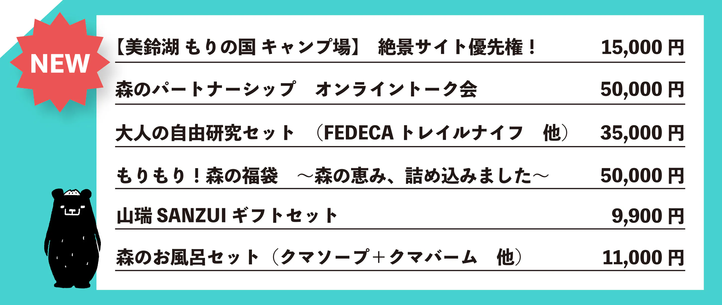 支援を通じて、森の循環を実感していただけるお返しをご用意しました。