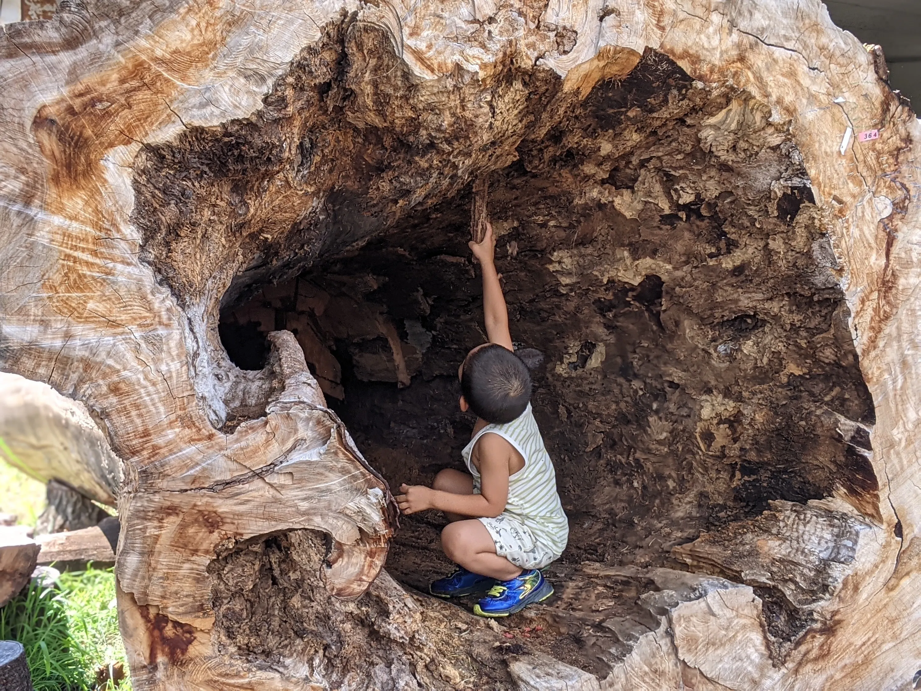 内部が空洞化し、安全のために伐採せざるを得なかったある神社の御神木。市場の規格から外れてしまうため、本来であればチップになるはずだったこの木を、その形を活かした“子どもたちが遊べるオブジェ”として、次の居場所へとつなぎました。