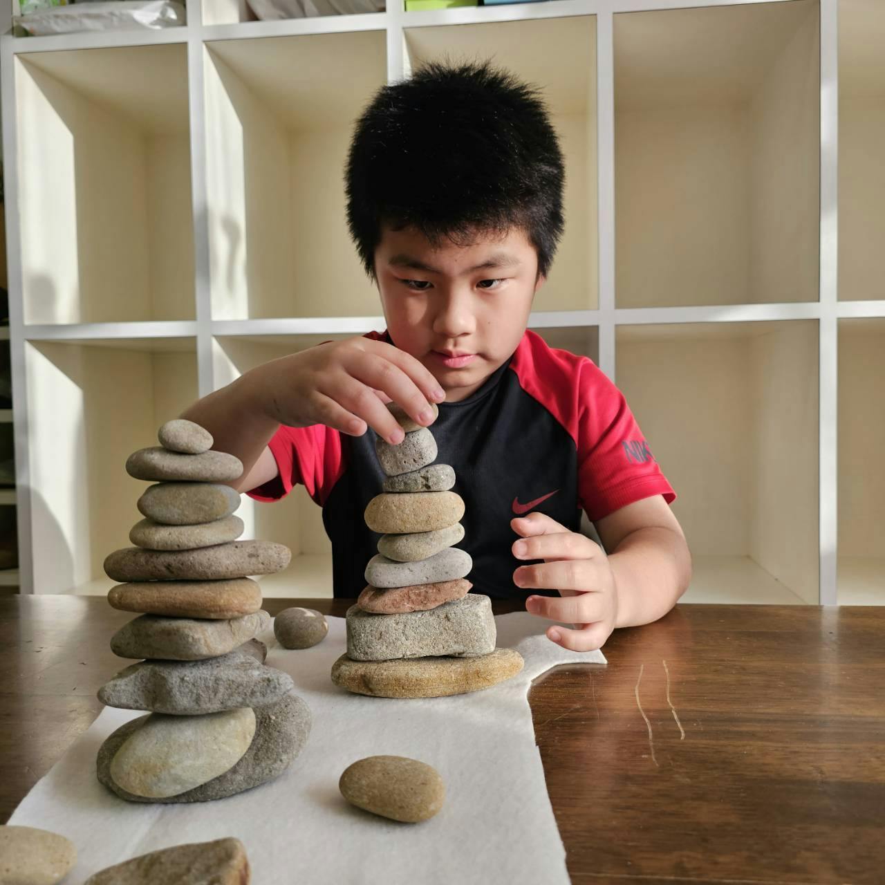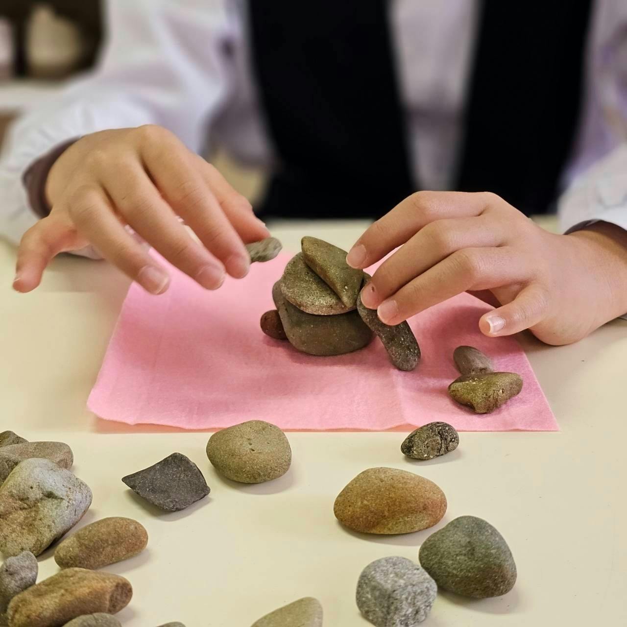石を手で触れ、考え、積み上げる体験は、集中力や空間認知力を育み、「できた」という小さな達成感を積み重ねる時間につながります。