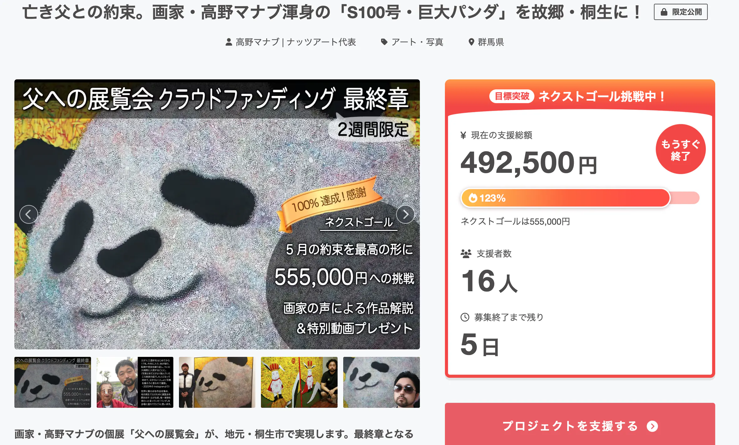 本日より、正式にネクストゴールとして555,000円を目指すことにいたしました。この数字は、個展の開催月、そして私と亡き父の誕生月である「5月」にちなんだものです。