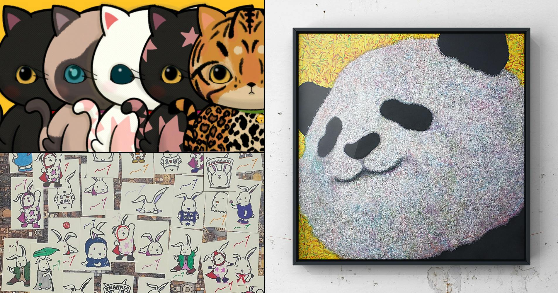 【パンダ・ウサギの絵画作品・原画ドローイング】