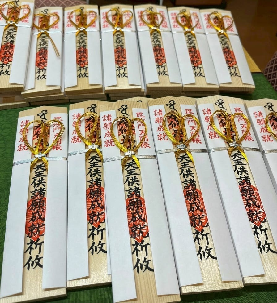 お土産に「富突」お守りと「勝守り」、特製「毘沙門天王しおり」をご参加人数分お授けします。