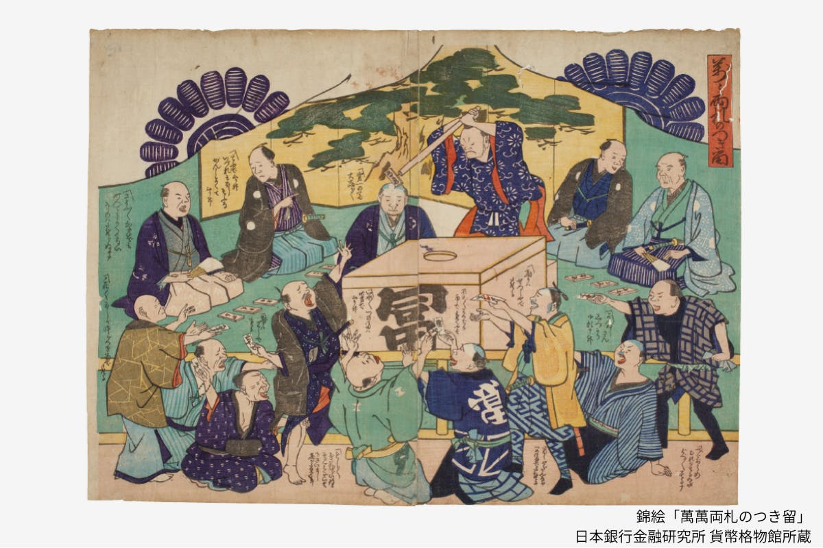 錦絵「萬々両札のつき留」日本銀行金融研究所貨幣博物館所蔵