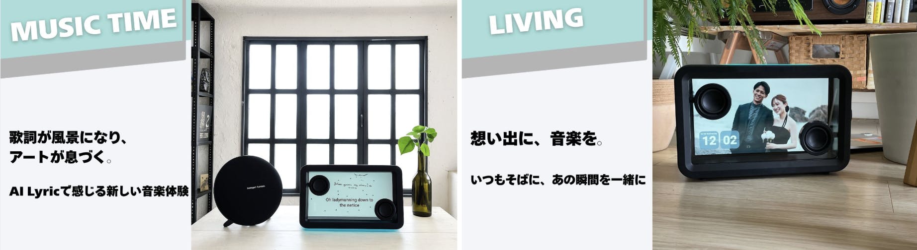 歌詞生成機能は、再生中の音楽をもとにAIが歌詞を生成する機能です。公式歌詞データを取得・表示するリリックスピーカーとは仕様が異なります。現在は主に英語楽曲での使用を推奨しています。日本語の歌詞生成も対応していますが、今後のアップデートの精度向上の予定です。またフォトフレームモードでは、歌詞表示はフレーム下部の固定表示となります。