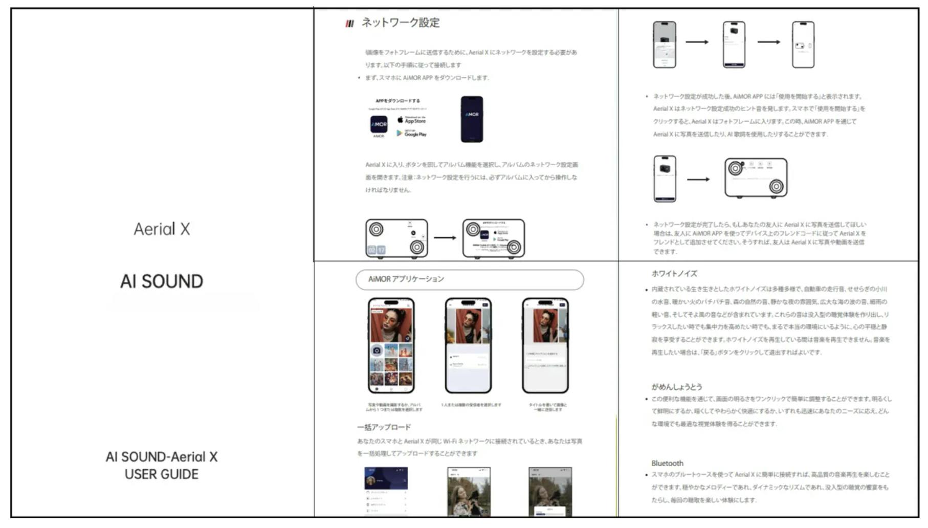 日本語のユーザーマニュアルが付属しまします。また専用アプリAiMORも日本語対応しています。