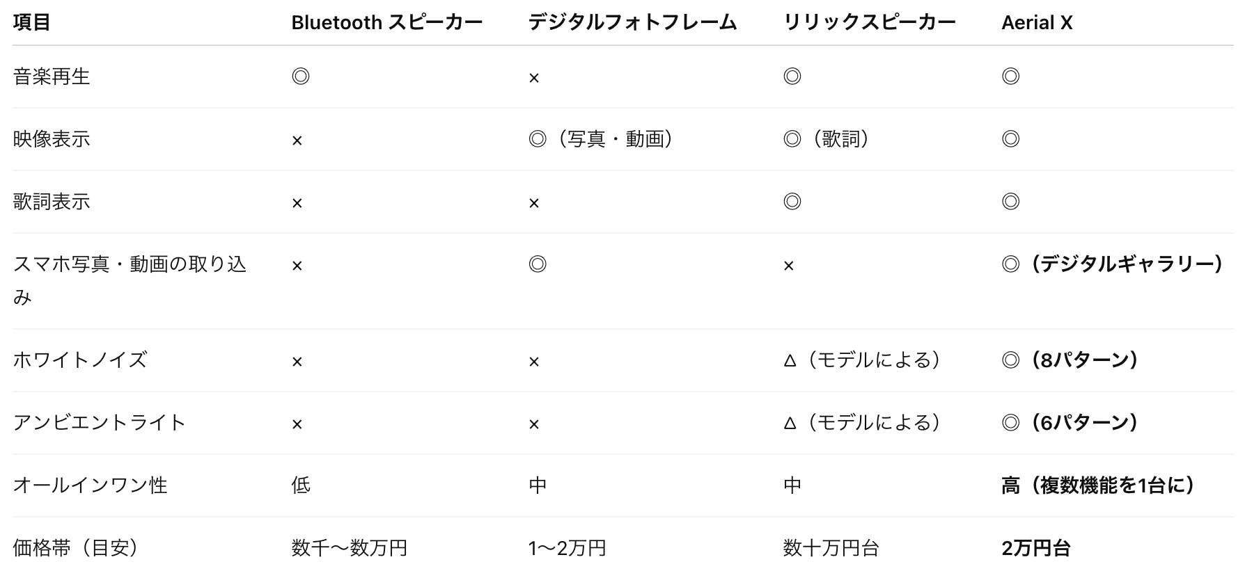Aerial Xは、音楽をただ再生するためのデバイスではなく、空間をつくる要素のひとつとして音楽を楽しみたい方に向いています。