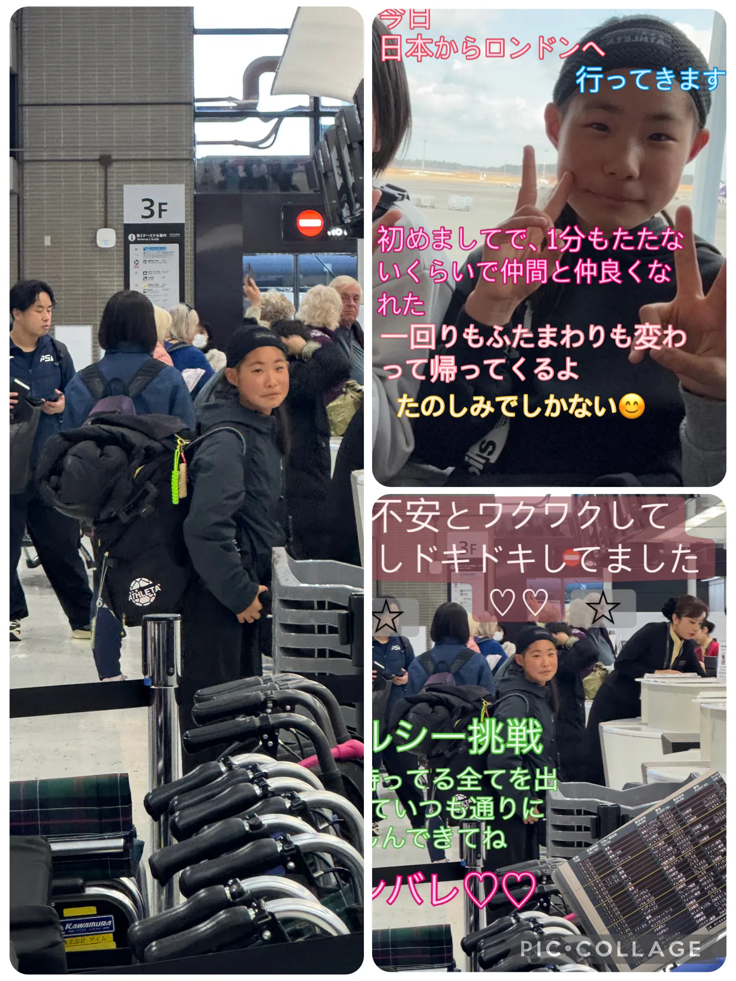 2026/03/27 22:07葉月妃は、本日ロンドンへ渡英しました。皆様の応援を頂けたおかげでハヅキの夢の挑戦が出来たこと心より感謝申し上げます。本当にありがとうございます。ハヅキのサッカー人生の転機になると思います。葉月妃の様子ですが、写真を見ていただければおわかりの通り、楽しみで仕方ない感じでしたが、5年生のあどけなさと手荷物検査を待っている表情が少し大人っぽさが、見え隠れしていました。不安とワクワク(っ ॑꒳ ॑c)していて、初めて出会った仲間と1分もしないで仲良くなり、楽しみ倍増していました。私たち夫婦では、叶えてあげられなかった葉月妃の挑戦を皆様のお力で叶える事が出来ました。本当に感謝しております。葉月妃自信も、皆様のお力添えがあって支えて下さる方がいることを心に刻みロンドンへ挑戦しに行きました。良い経験になることは、間違いないと思います。今後の様子もご報告致します。本当にありがとうございます。 もっと見る