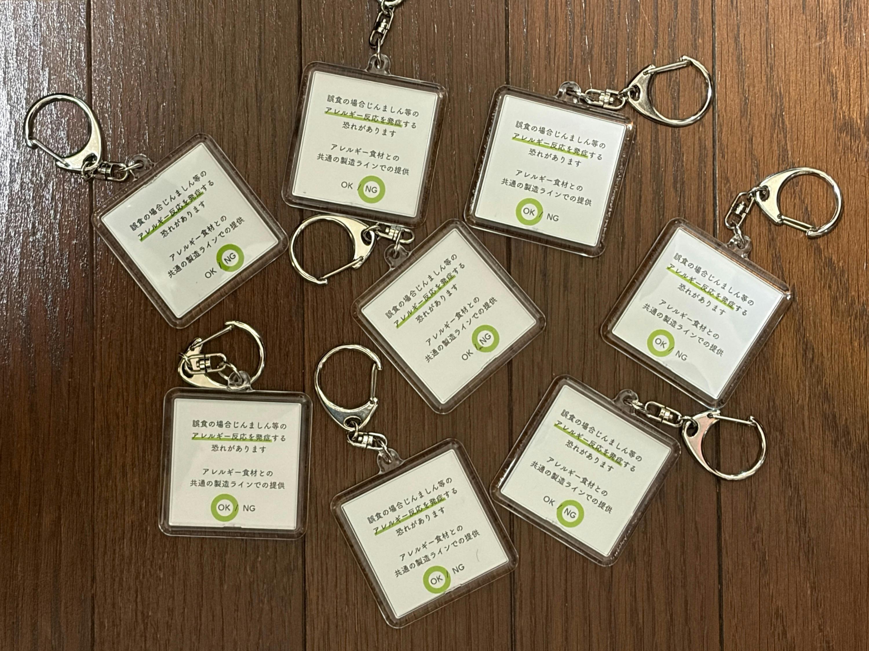 キーホルダーと、ステッカー、巾着の3種類を制作しています。